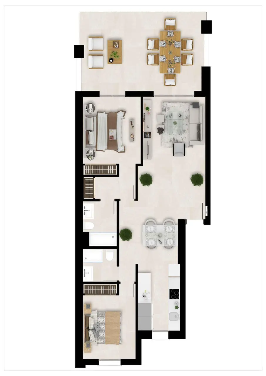 Nowy kompleks mieszkaniowy oferuje panoramiczne widoki na pole golfowe. Nowoczesne nieruchomości mają mnóstwo naturalnego światła, ponieważ wychodzą na południe lub południowy zachód.
