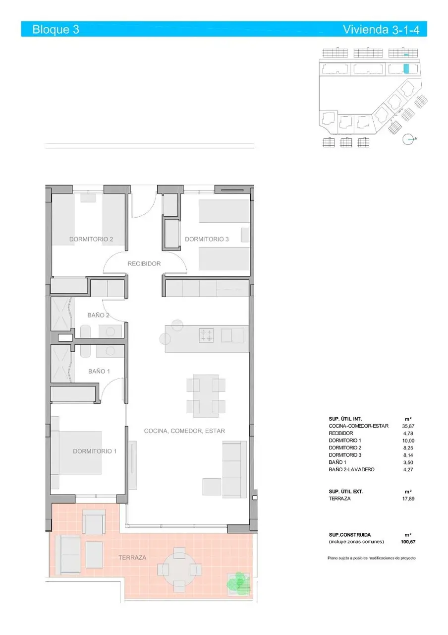 Apartamenty posiadają 3 sypialnie, 2 łazienki, salon na otwartym planie z kuchnią, parter z prywatnym ogrodem, środkowe piętro z tarasem i ostatnie piętro z prywatnym solarium.
