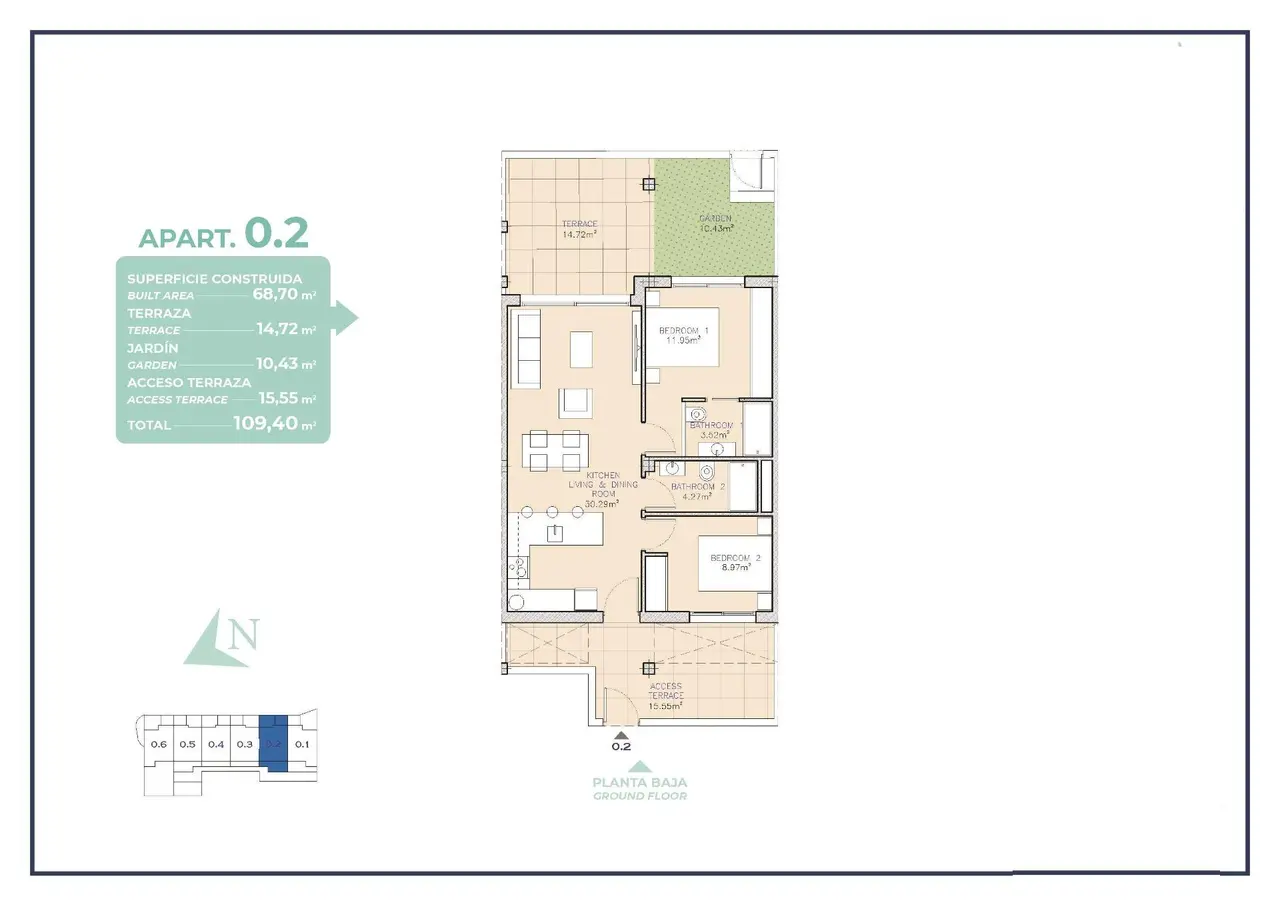 Rynek Pierwotny budynek mieszkalny składa się z 32 apartamentów i penthouse’ów z 2 i 3 sypialniami oraz 9 ekskluzywnych willi łączących nowoczesny design, jakość i funkcjonalność.