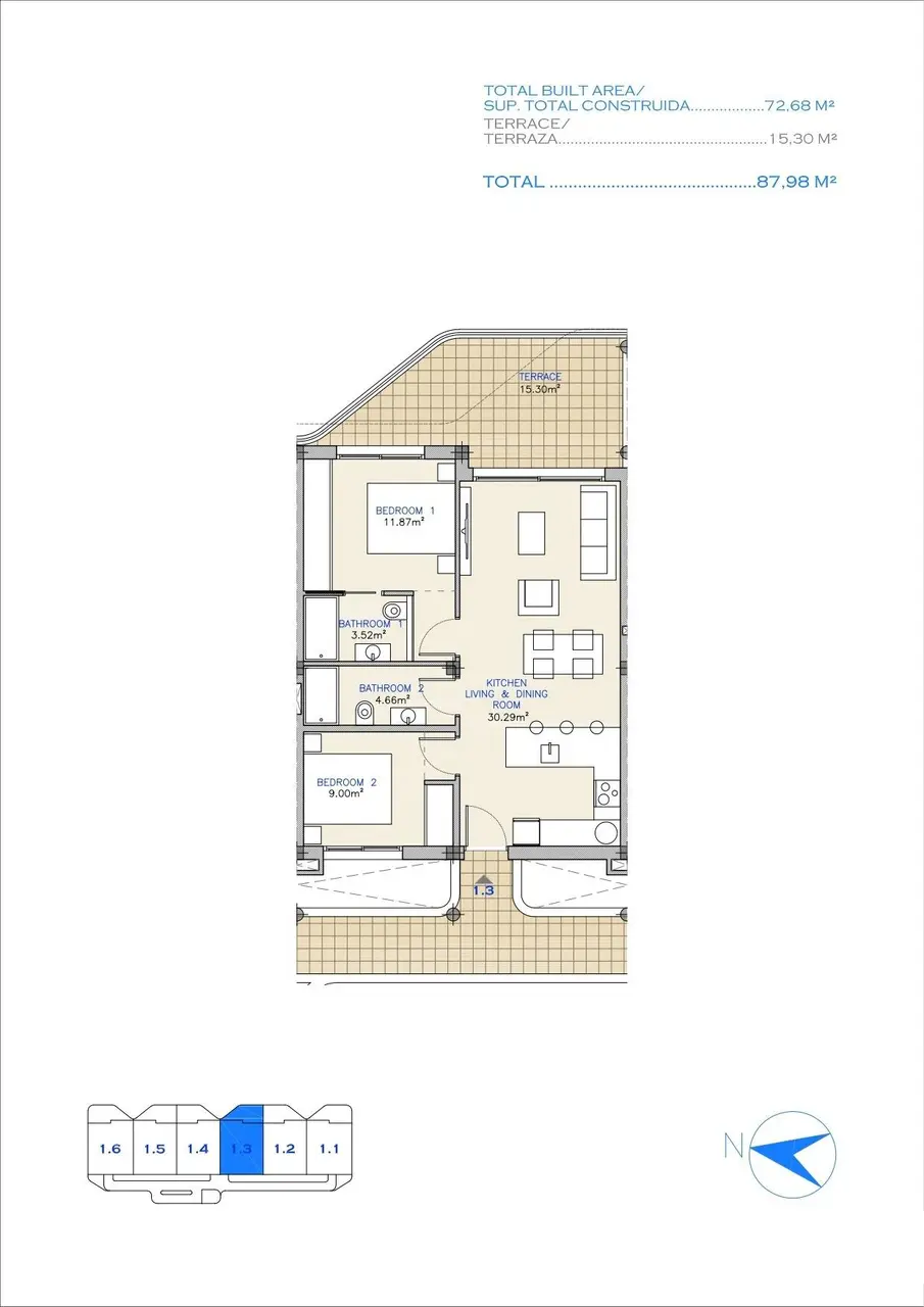 Nowa inwestycja mieszkaniowa obejmuje 16 nowoczesnych apartamentów z 2 i 3 sypialniami oraz 6 ekskluzywnych willi z 3 sypialniami. Nieruchomości te pięknie łączą nowoczesny design z jakością i funkcjonalnością, zaspokajając potrzeby różnych stylów życia. Mieszkańcy mogą cieszyć się wspaniałymi widokami zarówno na pole golfowe, jak i malownicze Mar Menor, co zwiększa ogólne wrażenia z życia.
