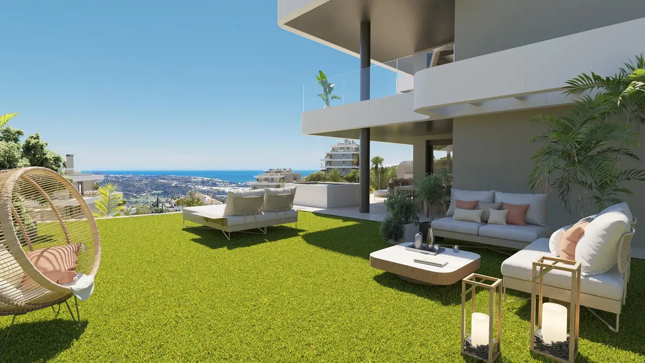 Oko naturalnie wędruje od jeziora szmaragdowozielonego pola golfowego, którego tory wodne biegną od dolnego obwodu kompleksu, przez andaluzyjską wieś do tętniącego życiem miasta La Cala de Mijas. Tutaj piaski wybrzeża Morza Śródziemnego oferują liczne kluby plażowe i chiringuitos, idealne na długie, leniwe letnie lunche. Obszerne apartamenty z dwiema i trzema sypialniami są przestronnie rozmieszczone w niskich blokach o zaledwie czterech piętrach, z zachwycającymi wypielęgnowanymi wspólnymi ogrodami wijącymi się między rezydencjami.