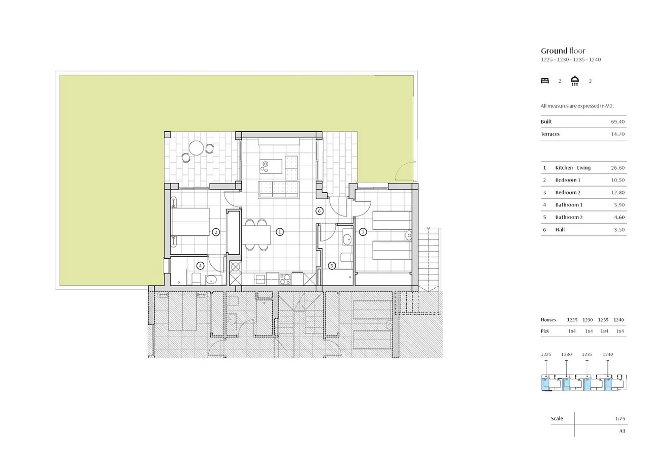 Orientacja południowa zapewnia naturalne oświetlenie o każdej porze roku i naturalne ogrzewanie od świtu do zachodu słońca, co zmniejsza zużycie energii. Otwarte nieruchomości koncepcyjne z oknami i przesuwanymi drzwiami umożliwiają wentylację krzyżową i wpuszczają światło. Nieruchomości są usytuowane w taki sposób, że światło może dostać się wszędzie, ale jednocześnie oferuje świeże i przytulne zakątki.