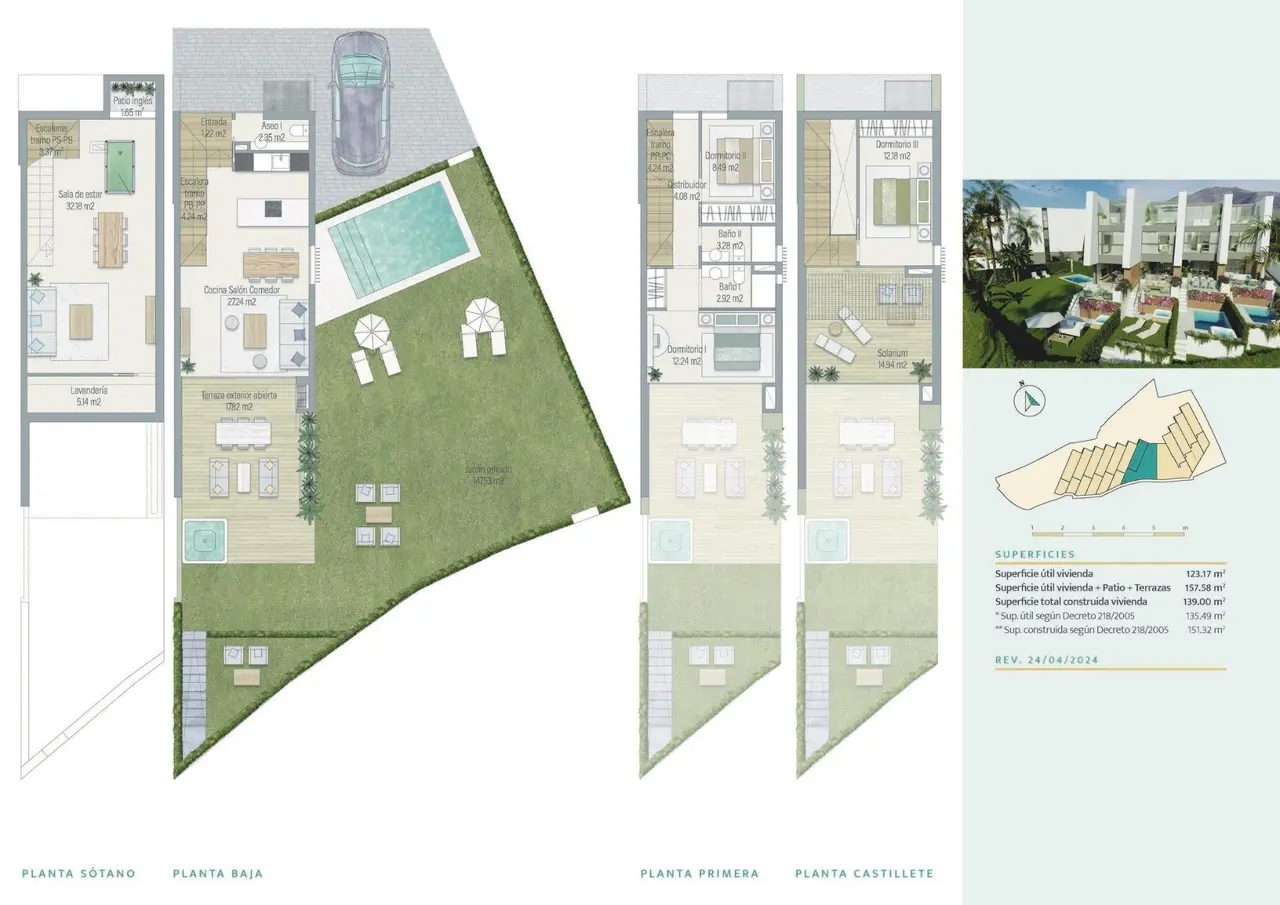 Ekskluzywne kamienice z 3 sypialniami, 2 łazienkami, toaletą dla gości, rozmieszczone na dwóch piętrach, plus piwnica i punkt widokowy na prywatne solarium, przestronne pokoje, salon o podwójnej wysokości, panoramiczne widoki w głównej sypialni, własny taras i kompletne wyposażenie z wyposażoną kuchnią, klimatyzacją, ogrzewaniem i systemem podwójnych szyb, między innymi, z wielką delikatnością w wykończeniu detali, zaspokajając potrzeby najbardziej wymagających klientów.
