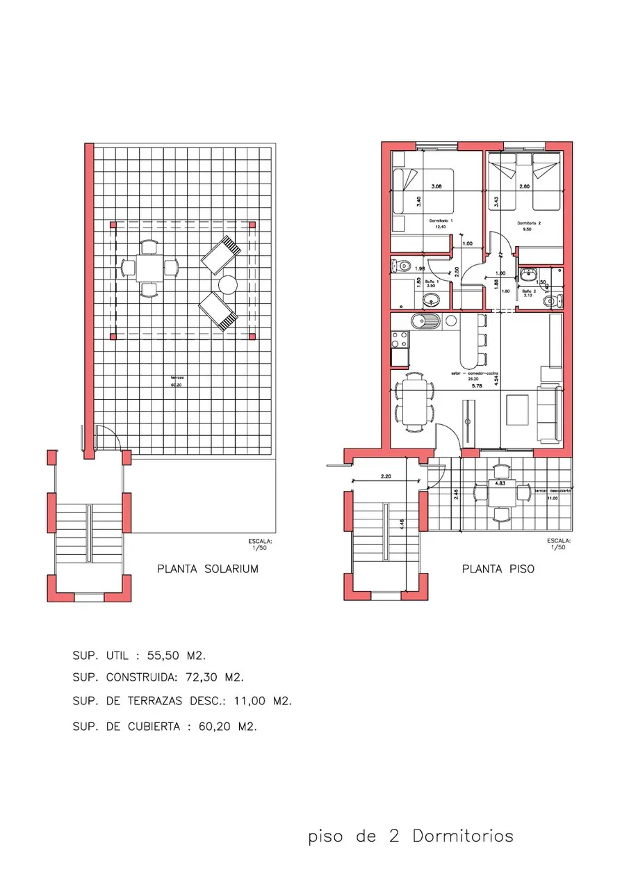 Bungalow na parterze z prywatnym ogrodem i bungalow na najwyższym piętrze z prywatnym solarium.
