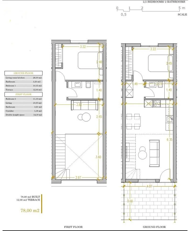 7 kamienic z 2 i 3 sypialniami z dostępem do wspólnego basenu.
