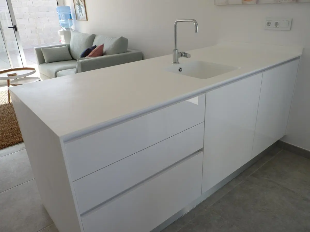 Nowo wybudowane bungalowy mają 2 sypialnie, 2 łazienki, kuchnię na otwartym planie z przestronnym salonem, wbudowane szafy, taras.