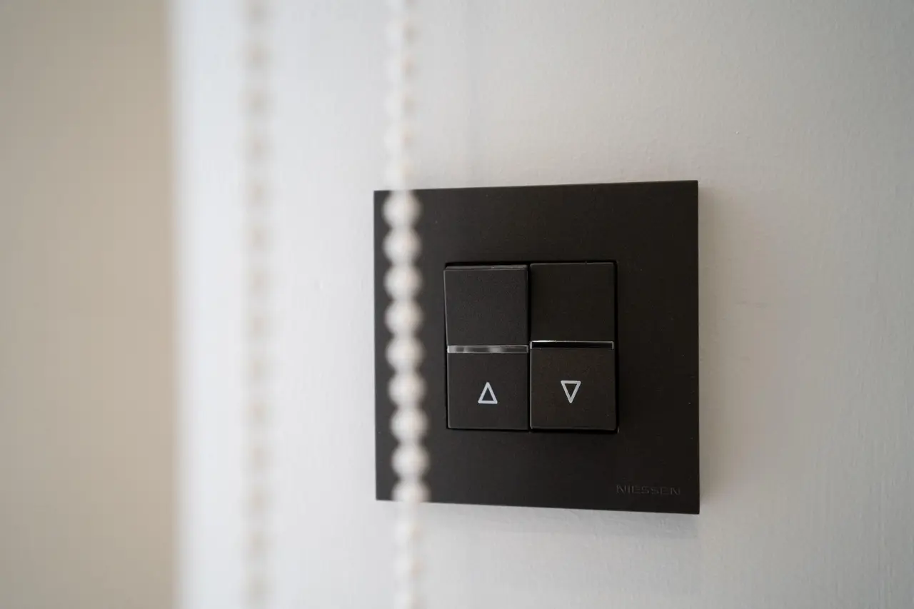 Aluminiowa stolarka zewnętrzna, podwójne szyby i aluminiowe okiennice.