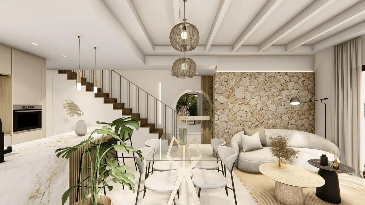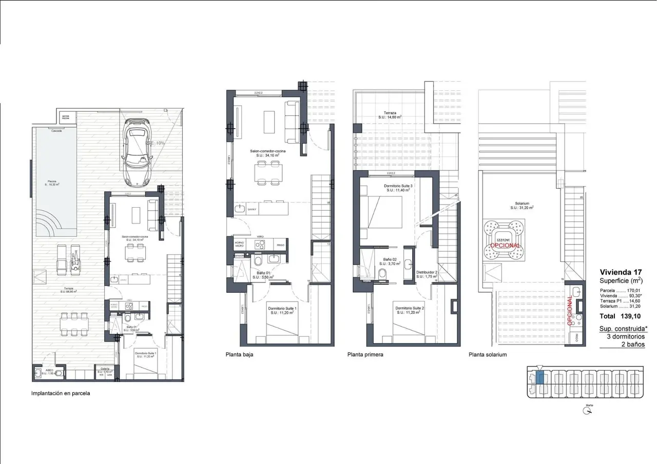 Nowoczesne nieruchomości mają 3 sypialnie, 2 łazienki, toaletę dla gości, kuchnię na otwartym planie z częścią wypoczynkową, wbudowane szafy, solarium, prywatny ogród z basenem i miejsce parkingowe przy drodze.