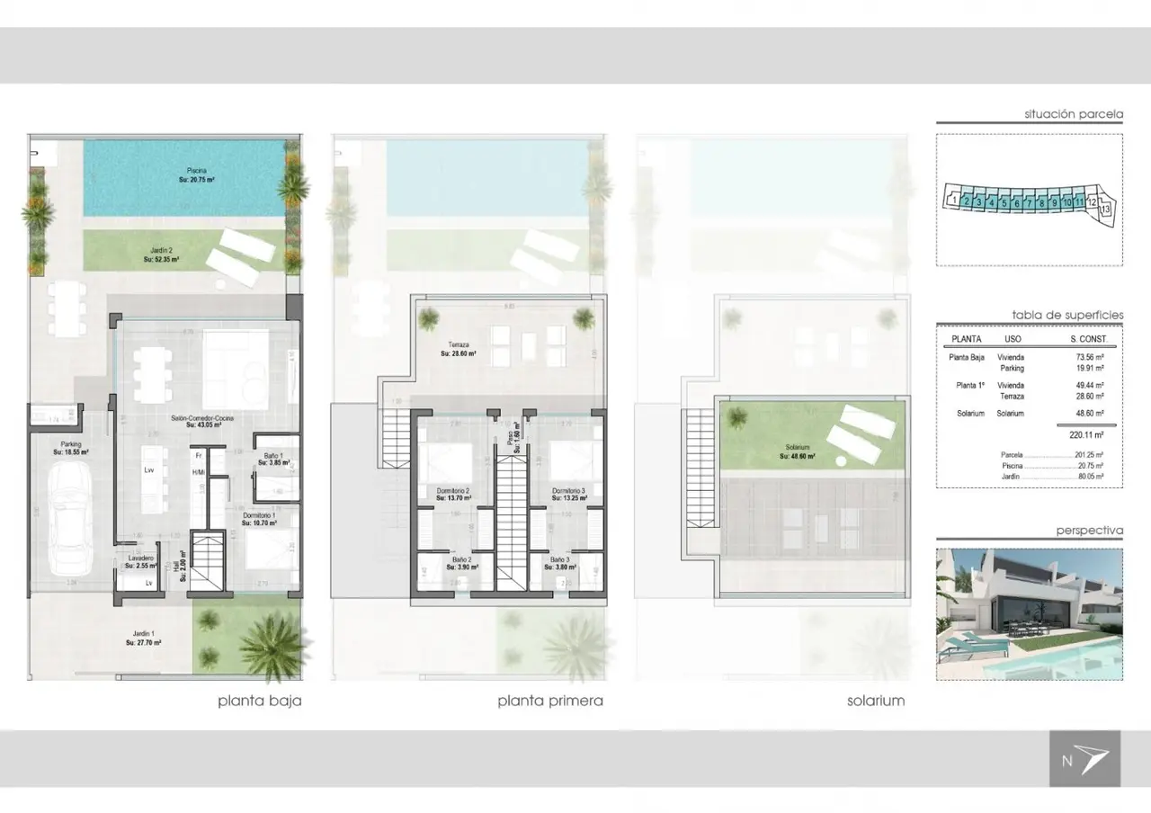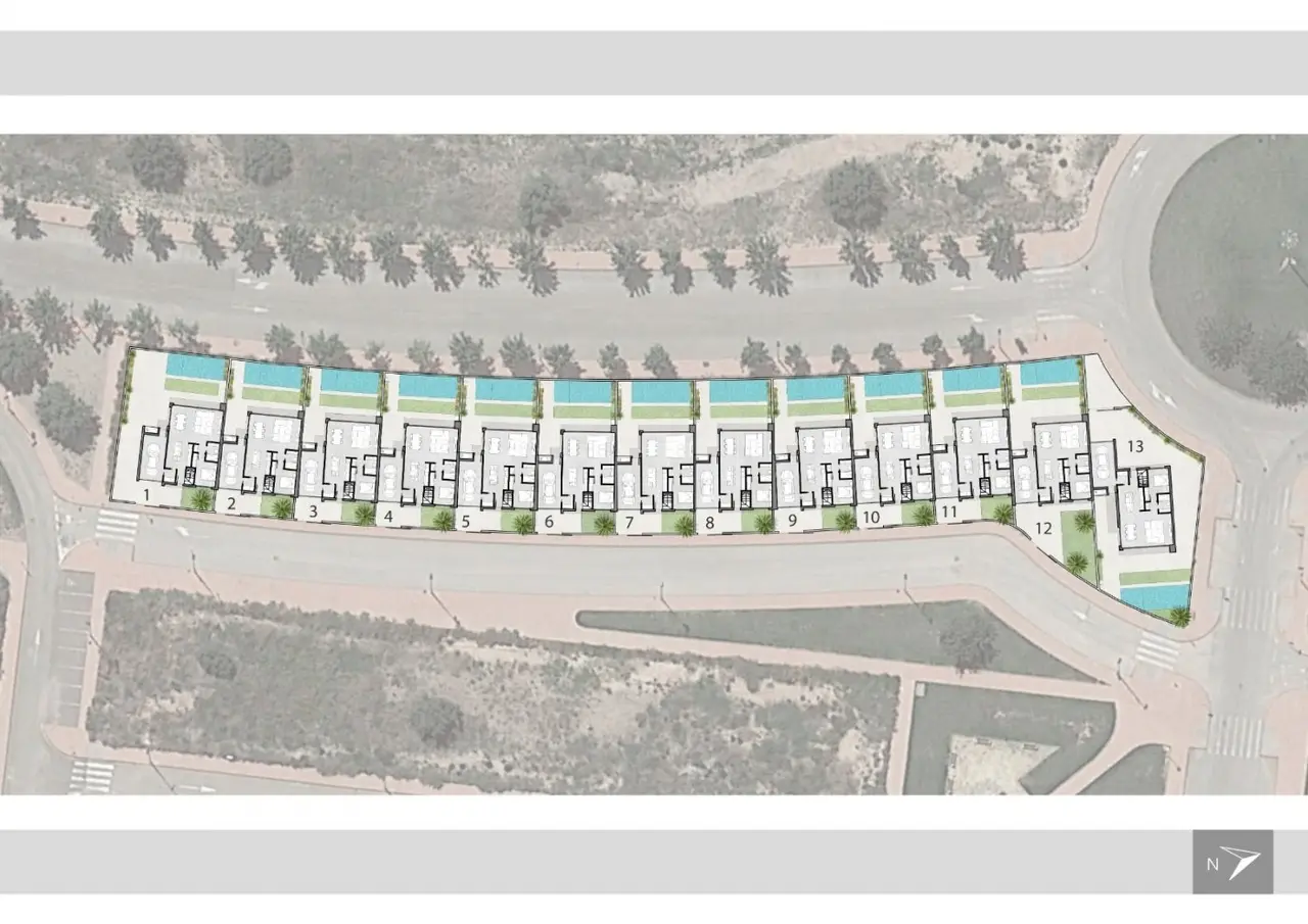 Nowe osiedle kamienic z prywatnymi basenami położone w Santiago de la Ribera, w odległości krótkiego spaceru od plaż Mar Menor.
