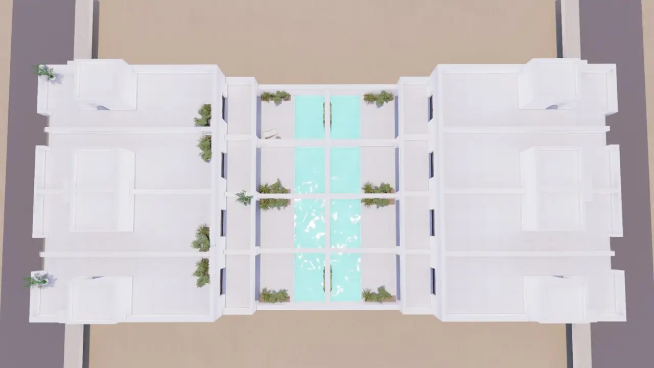 Kompleks New Build składający się z 8 kamienic, z prywatnym basenem, tarasem i solarium dla każdej jednostki.