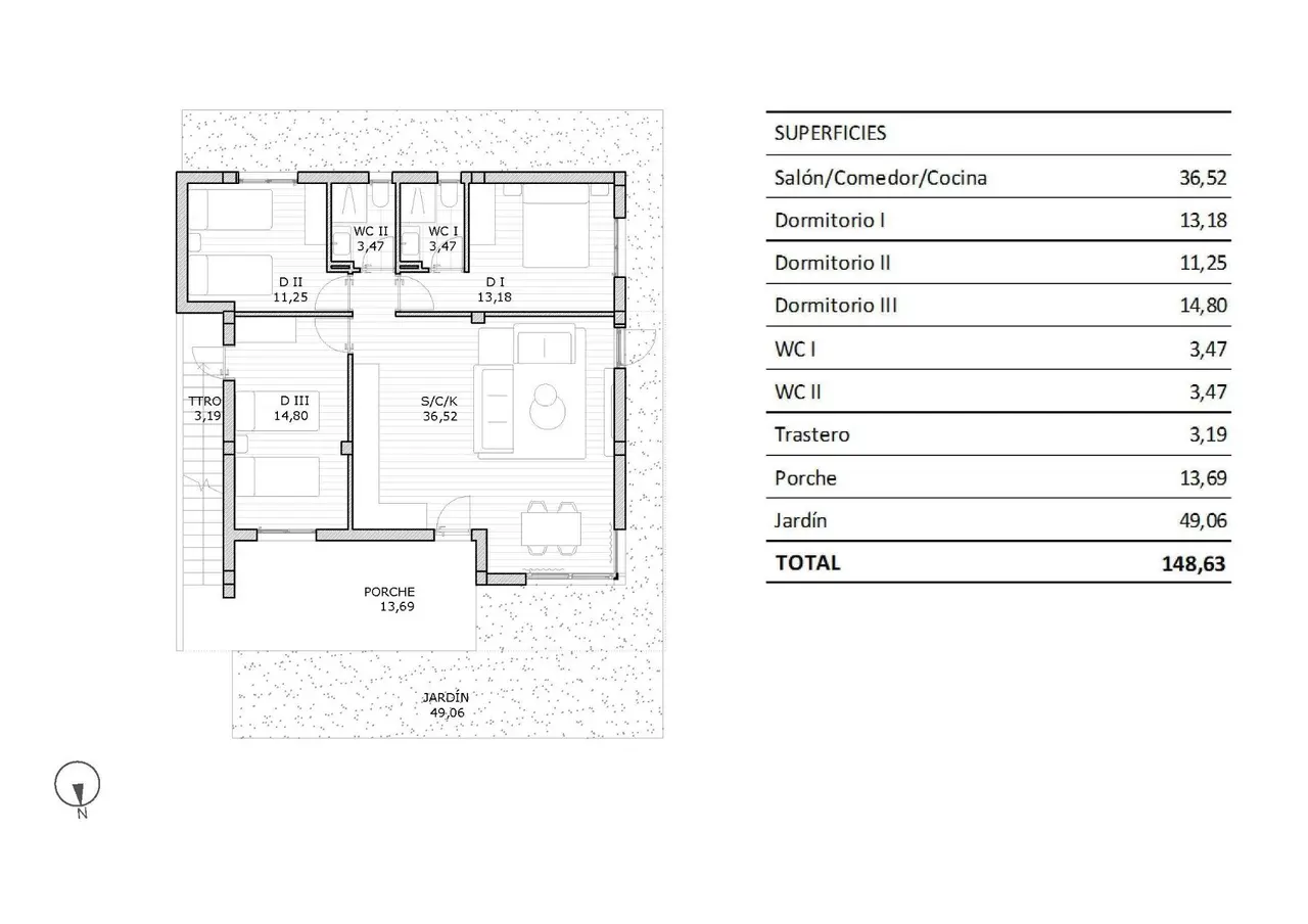 Kompleks mieszkalny składa się z bungalowów z 2 i 3 sypialniami, na parterze z prywatnym ogrodem lub na najwyższym piętrze z prywatnym solarium.