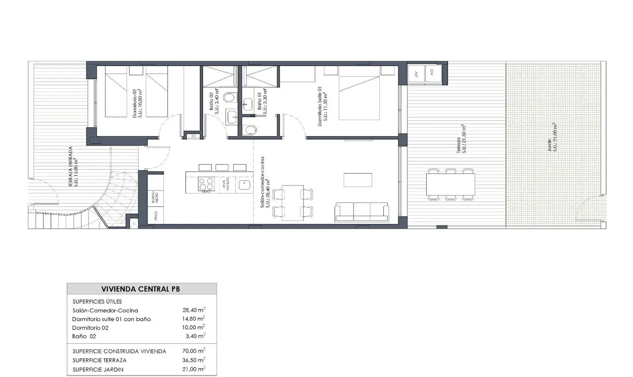 Nieruchomości są zaprojektowane w nowoczesnym stylu i mają wysokiej jakości wykończenia wewnętrzne i zewnętrzne. Można wybierać pomiędzy: