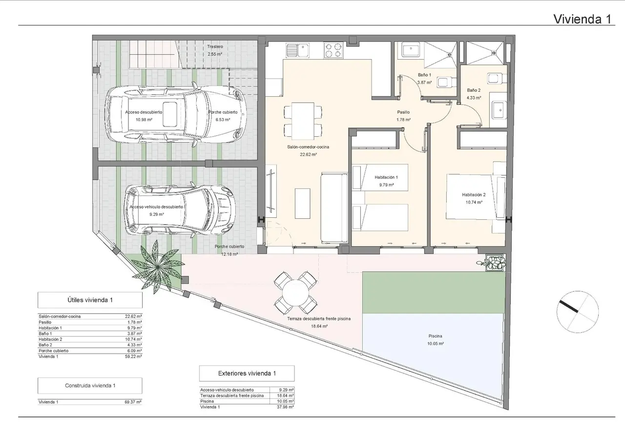 Rynek Pierwotny bungalowy w Lo Pagan z 2 sypialniami, 2 łazienkami, kuchnią na otwartym planie z częścią dzienną, tarasami, wbudowanymi szafami.