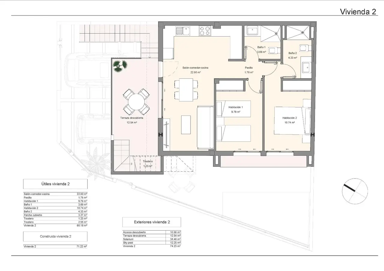 Rynek Pierwotny bungalowy w Lo Pagan z 2 sypialniami, 2 łazienkami, kuchnią na otwartym planie z częścią dzienną, tarasami, wbudowanymi szafami.