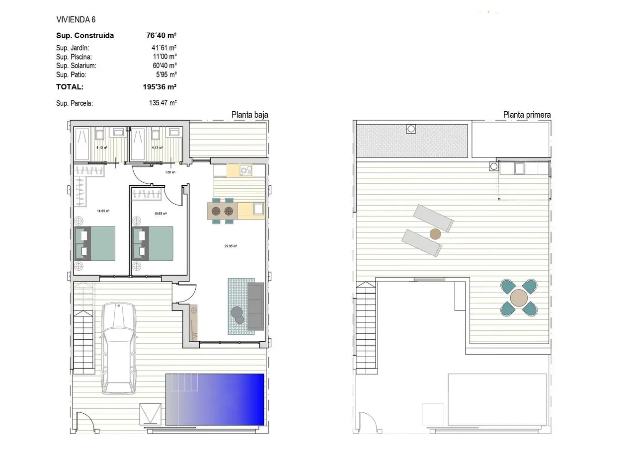 Nowoczesne nieruchomości z 2 sypialniami i 2 łazienkami, kuchnią na otwartym planie z salonem, wbudowanymi szafami, tarasem, prywatnym solarium, ogrodem z basenem i miejscem parkingowym.