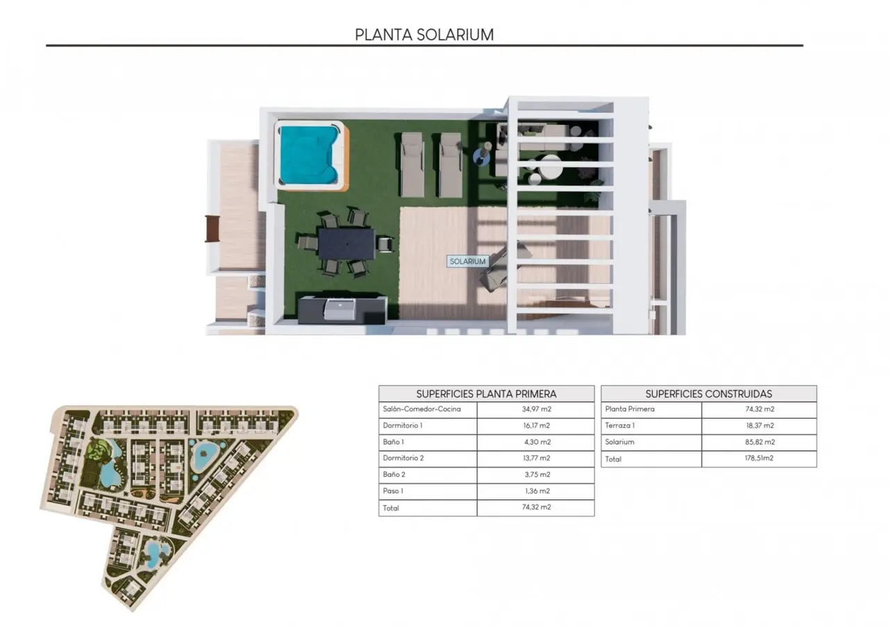 Lub bungalowy na pierwszym piętrze o powierzchni 178m2 z 85m2 solarium z panoramicznym widokiem na Laguna Rosa i Morze Śródziemne.
