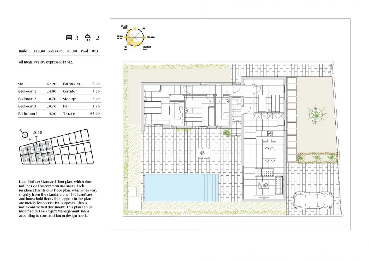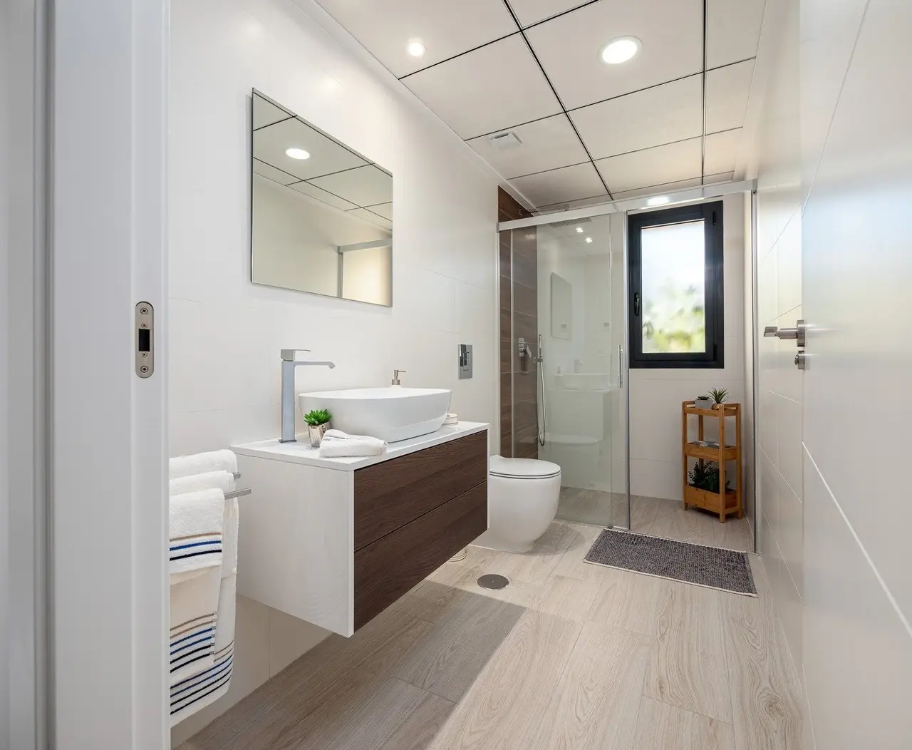 Wille te łączą nas ze starożytnymi kulturami śródziemnomorskimi i tradycją budownictwa połączoną z nowoczesną architekturą, tworząc urocze domy, najlepsze w przestrzeni i trendach projektowych. Na jednym piętrze, zaprojektowany tak, aby maksymalnie wykorzystać światło, z rozsyłem „L”, który doskonale oddziela strefę dzienną i kuchenną od pozostałych. Domy mają 3 sypialnie i 2 łazienki, na dużych działkach o powierzchni ponad 300 metrów, z prywatnym basenem, parkingiem i solarium, w najlepszym środowisku golfowym.