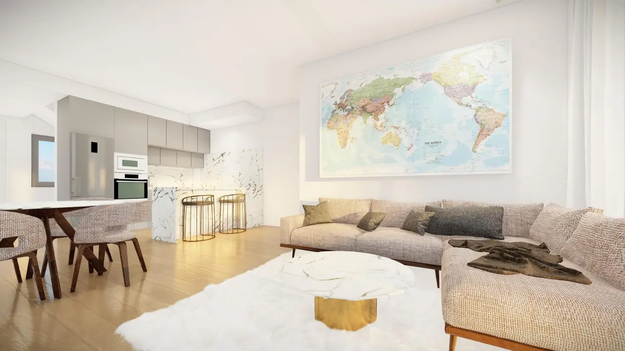 Nowoczesne nieruchomości składają się z 2 sypialni, 2 łazienek, kuchni na otwartym planie, salonu z otwartym widokiem na taras, półpiwnicy, solarium, prywatnego ogrodu z parkingiem.