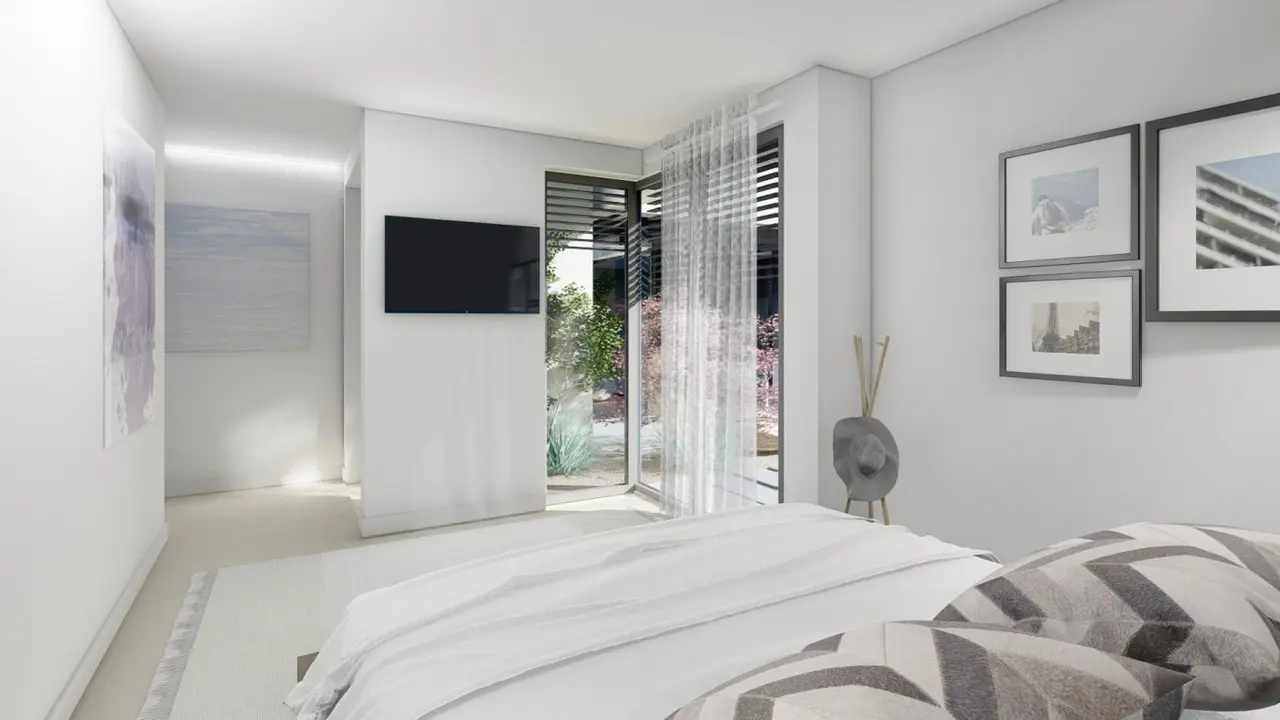 Villa ma 2 sypialnie, 2 łazienki, kuchnia na otwartym planie z częścią wypoczynkową abd bezpośredni dostęp do ogrodu z prywatnym basenem i miejscem parkingowym.