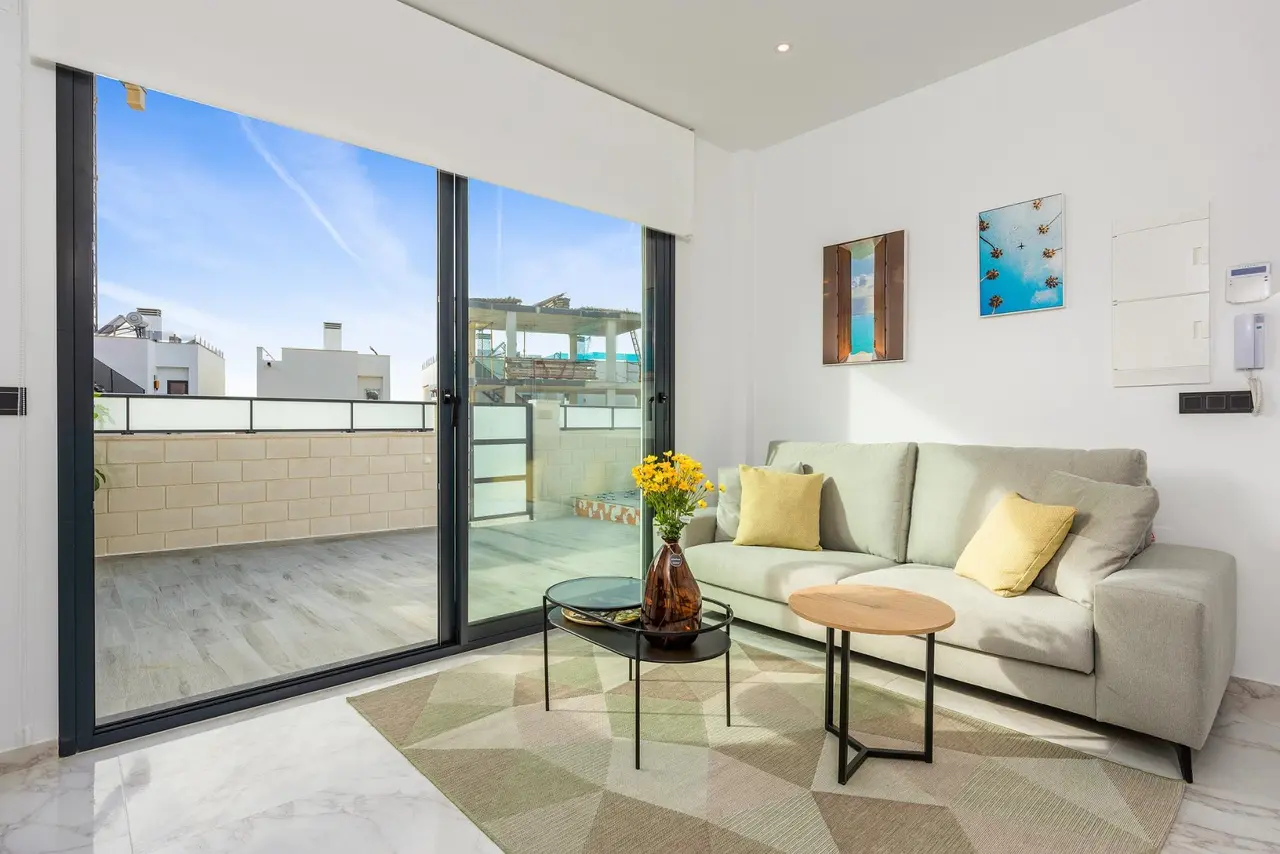 Bliźniak z 3 sypialniami, 3 łazienkami, kuchnią otwartą na salon z jadalnią, działka o powierzchni 192 m2 z prywatnym basenem i tarasem o powierzchni 16 m2 na pierwszym piętrze z niczym niezakłóconym widokiem. Możliwość udostępnienia prywatnego solarium o powierzchni 46 m2 za dopłatą.