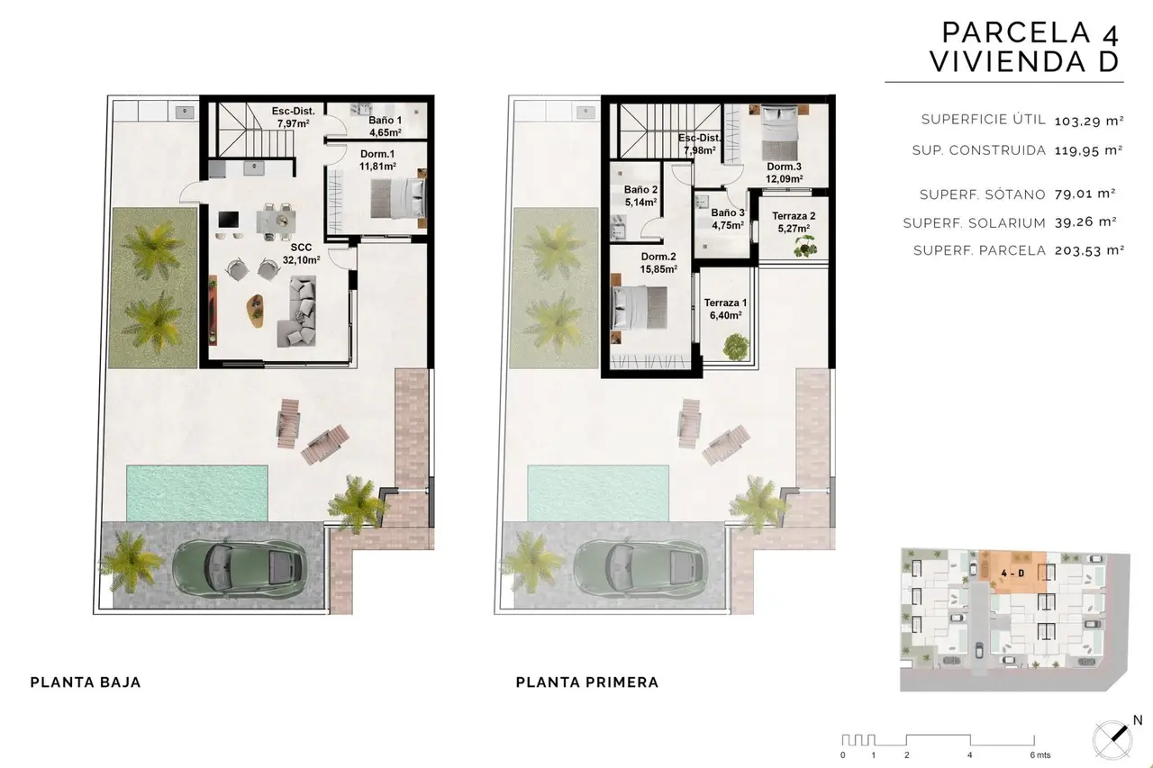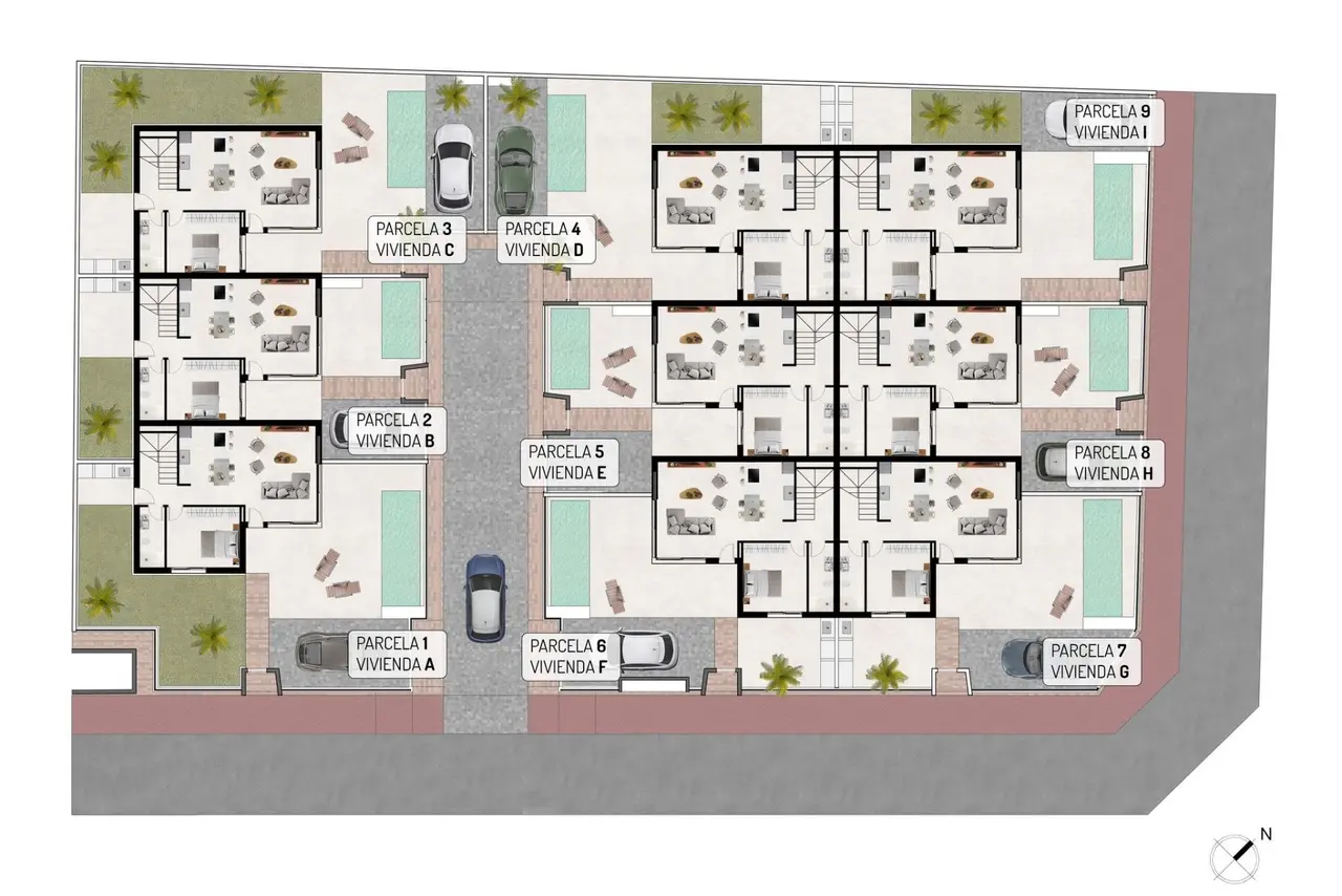 Ta ekskluzywna nowa inwestycja w uroczym miasteczku Benijófar oferuje 9 nowoczesnych kamienic i willi w zabudowie bliźniaczej, z których każda ma 3 sypialnie, 3 łazienki, piwnicę, prywatny basen, parking na miejscu i solarium na dachu.
