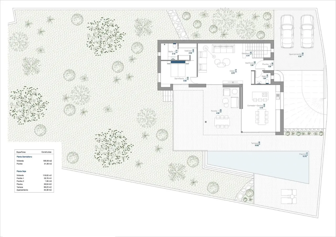 Zaawansowana kontrola klimatu: Ogrzewanie podłogowe zasilane przez energooszczędny system aerotermalny i klimatyzację kanałową, wszystkie zarządzane przez domotyczny system Airzone do indywidualnej kontroli temperatury w pomieszczeniu za pomocą przyjaznej dla użytkownika aplikacji.