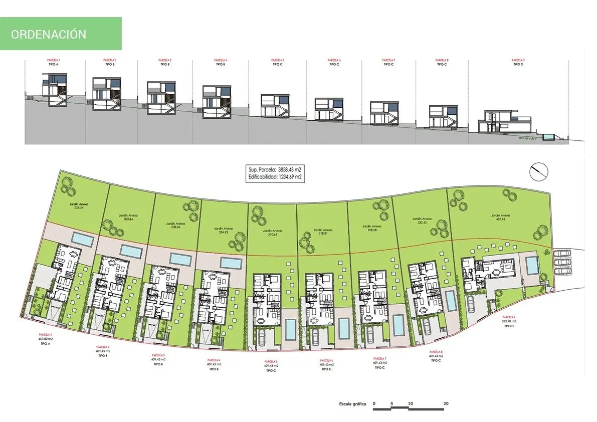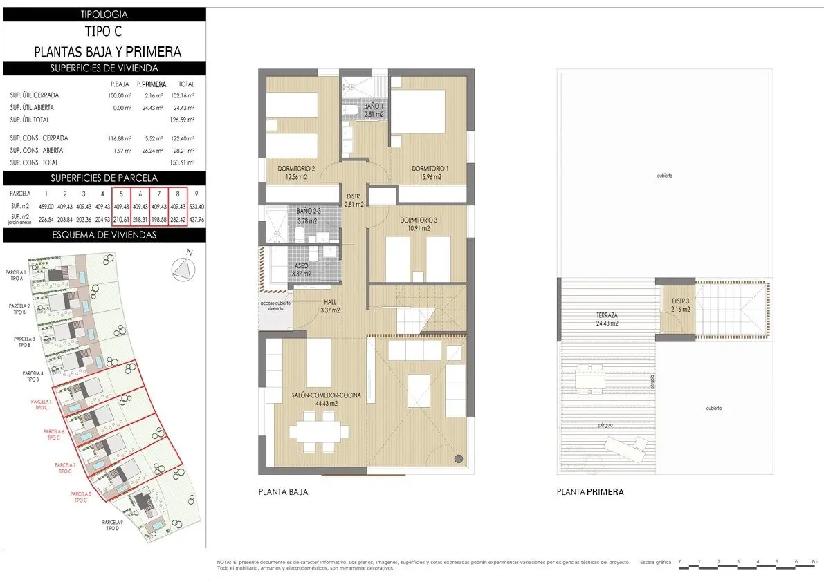 Wszystkie wille posiadają 3 sypialnie, 2 lub 3 łazienki, otwartą kuchnię z salonem, szafy wnękowe, klimatyzację i aerotermię, wyposażoną kuchnię, prywatny ogród z basenem i parking.