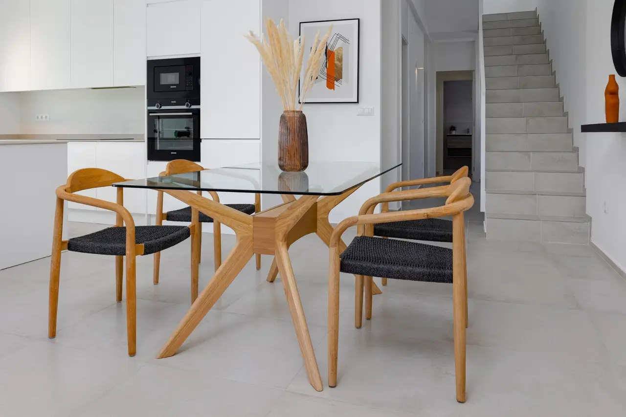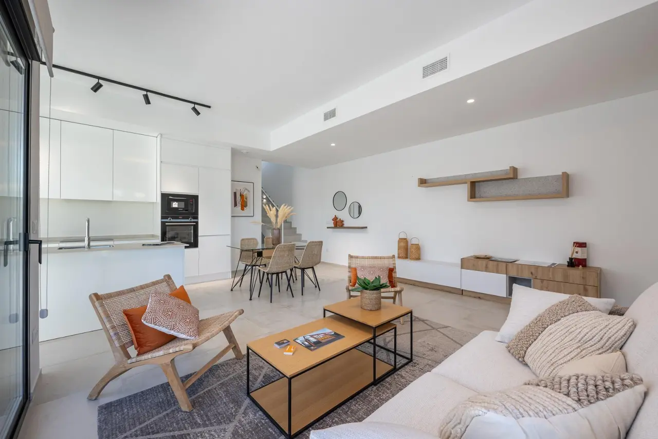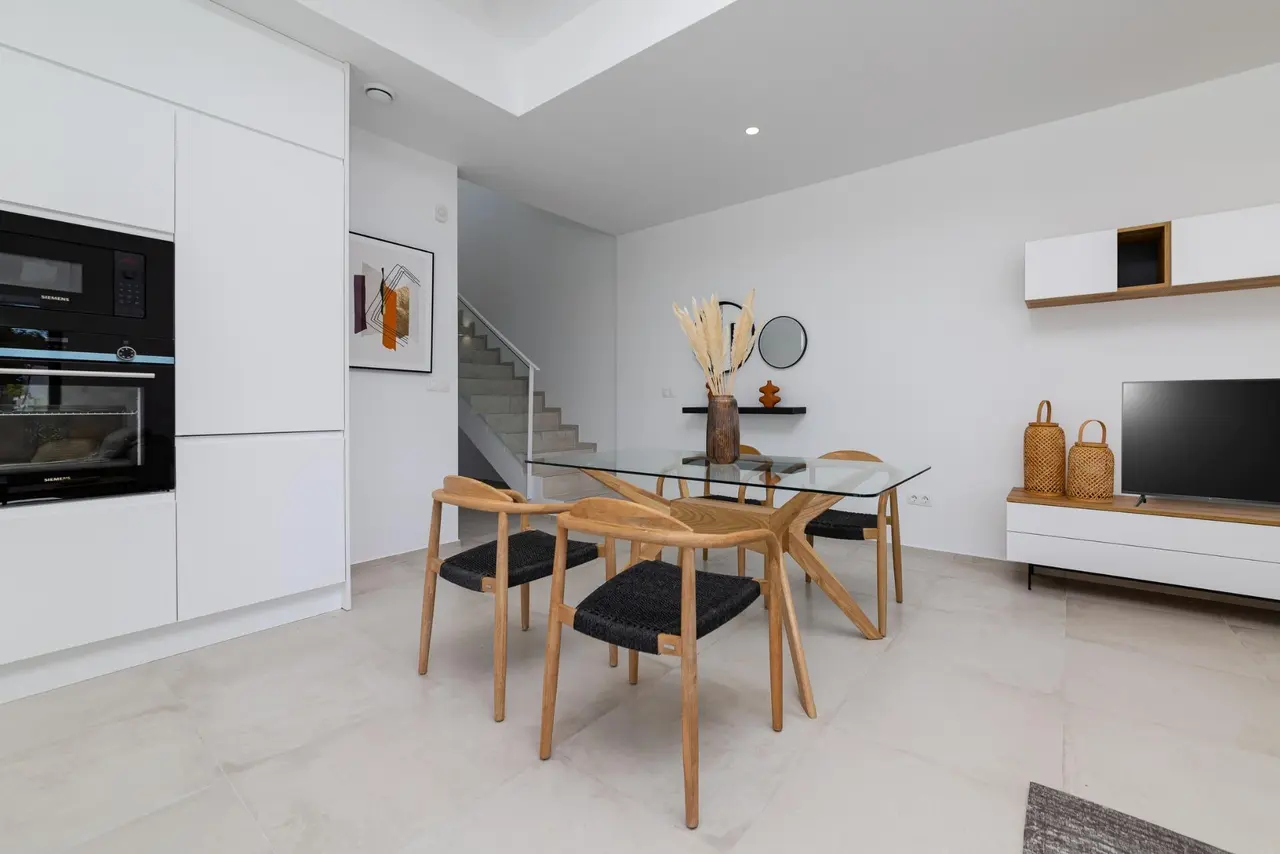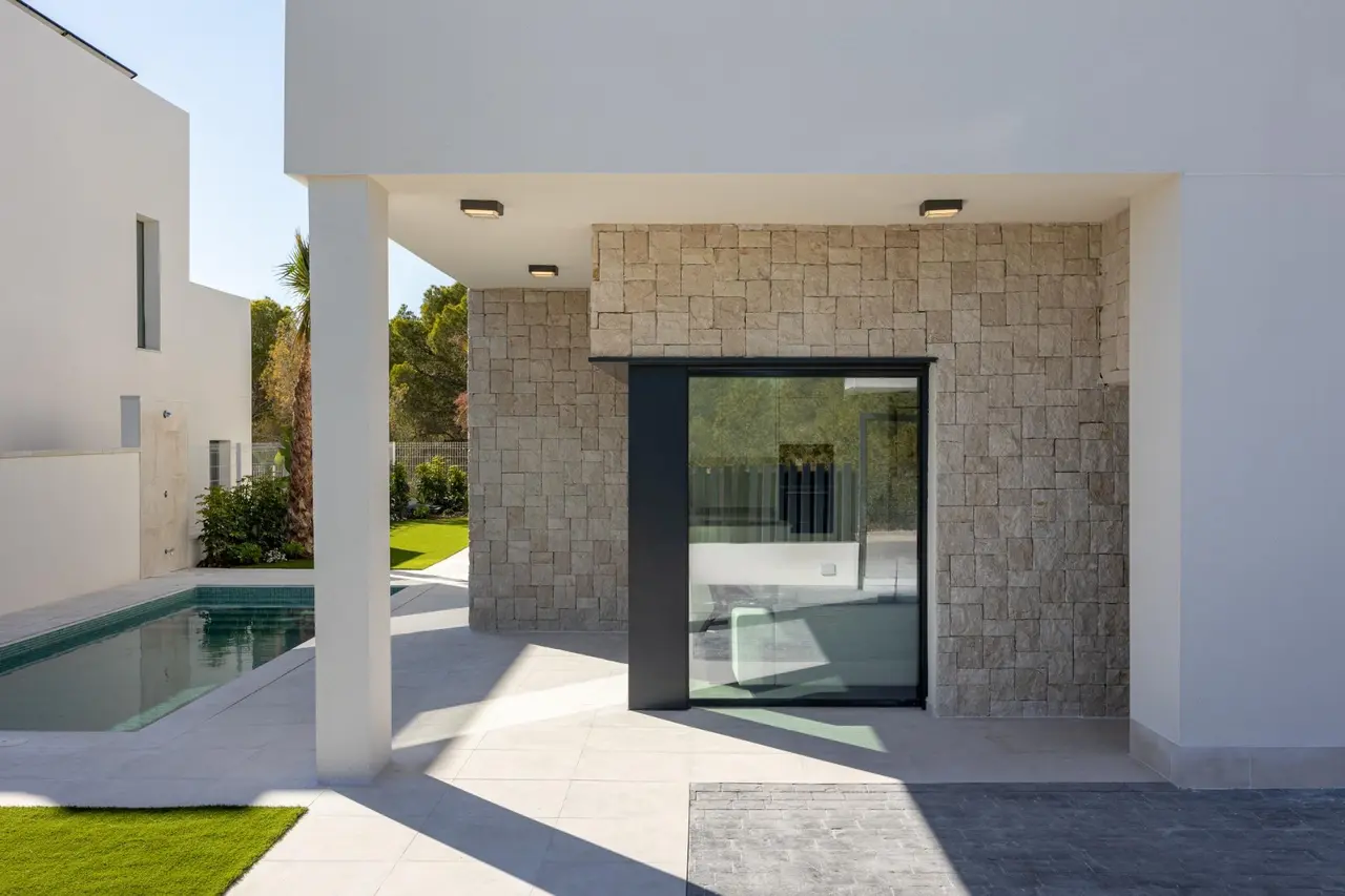 Wille zbudowane na 2 piętrach, posiada 3 sypialnie, 2 łazienki, kuchnia na otwartym planie z salonem, wbudowane szafy, taras i solarium, prywatny ogród z basenem i 2 miejsca parkingowe.