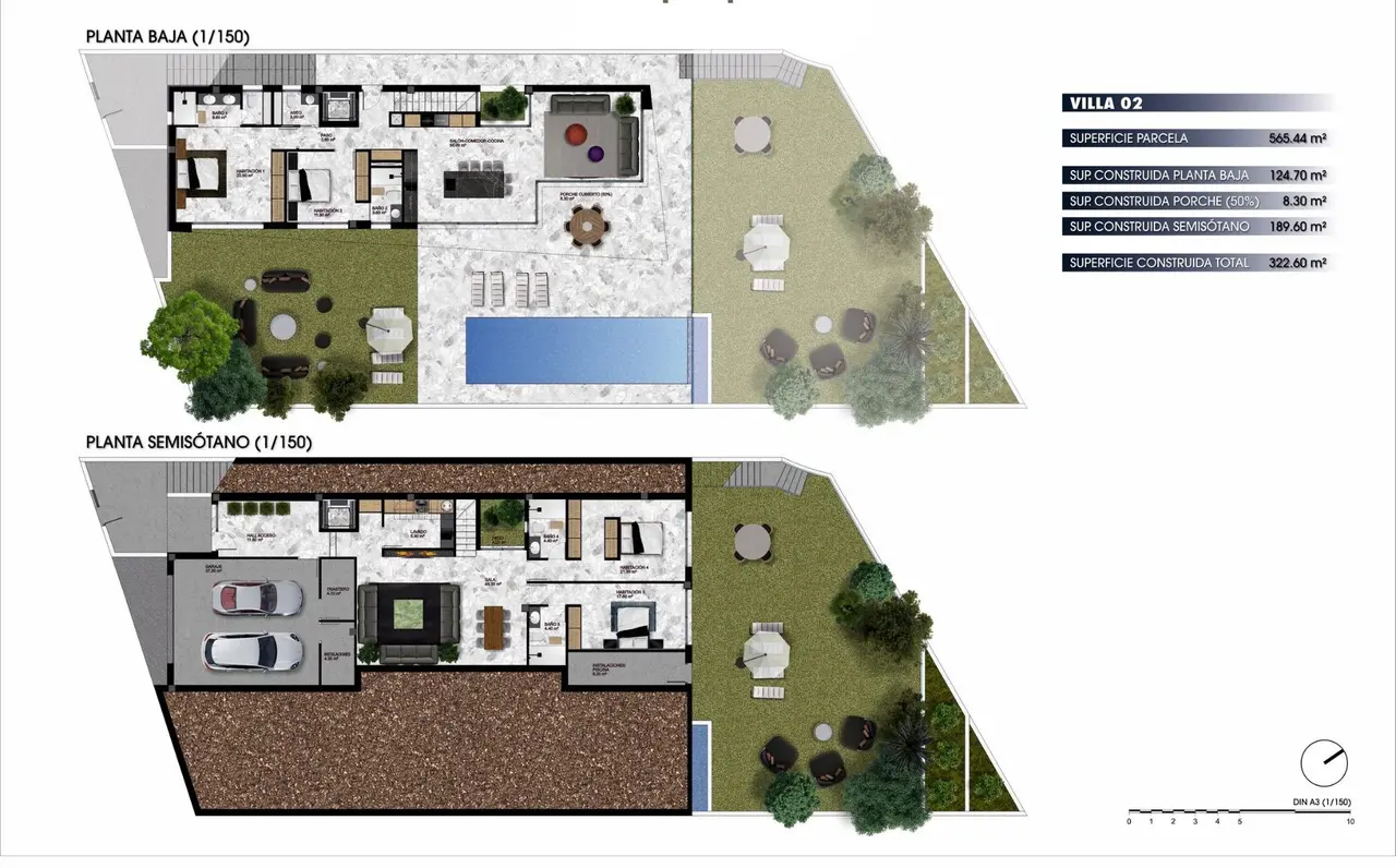 Wille z 4 sypialniami i 5 łazienkami, kuchnią na otwartym planie z częścią wypoczynkową, tarasem z basenem i wspaniałymi widokami na Benidorm, podwójnym garażem w półpiwnicy.