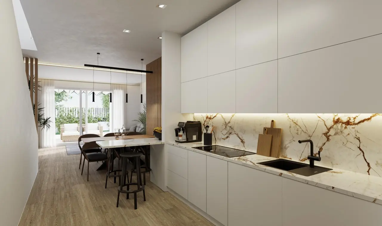 Wille składają się z dwóch pięter i piwnicy z angielskim dziedzińcem, mają 3 sypialnie, 3 łazienki, toaletę dla gości, kuchnię na otwartym planie z częścią wypoczynkową, wbudowane szafy, taras i prywatne solarium.