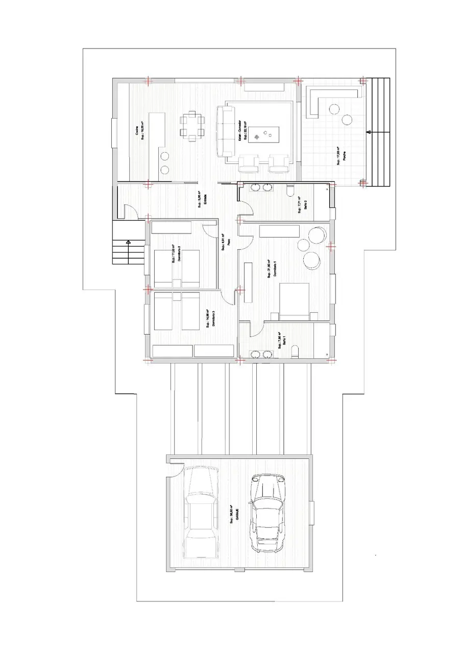 Nowoczesna jednopoziomowa willa zbudowana na ogromnej działce o powierzchni 10000 m2, posiada 3 sypialnie, 2 łazienki, toaletę dla gości, wyposażoną kuchnię na otwartym planie z przestronnym salonem-jadalnią, duże okna od podłogi do sufitu z dużą ilością naturalnego światła, wbudowane szafy.