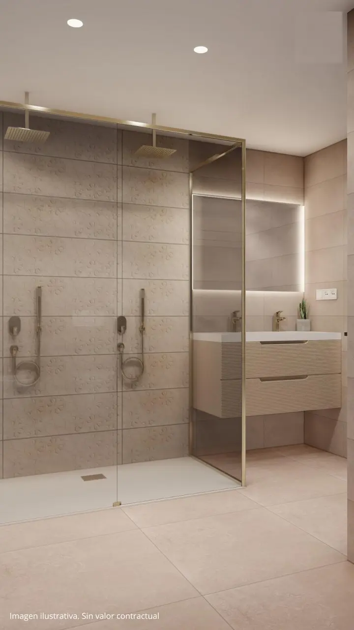 Nieruchomości zbudowane na 3 piętrach, mają 4 sypialnie, 3 łazienki, toaletę dla gości, kuchnię na otwartym planie z częścią wypoczynkową, wbudowane szafy, kilka tarasów z widokiem, parking na dwa pojazdy i ogród z bezpośrednim dostępem do części wspólnych. Wiele z nich posiada również solarium, w którym można spędzać wieczory na świeżym powietrzu z przyjaciółmi.