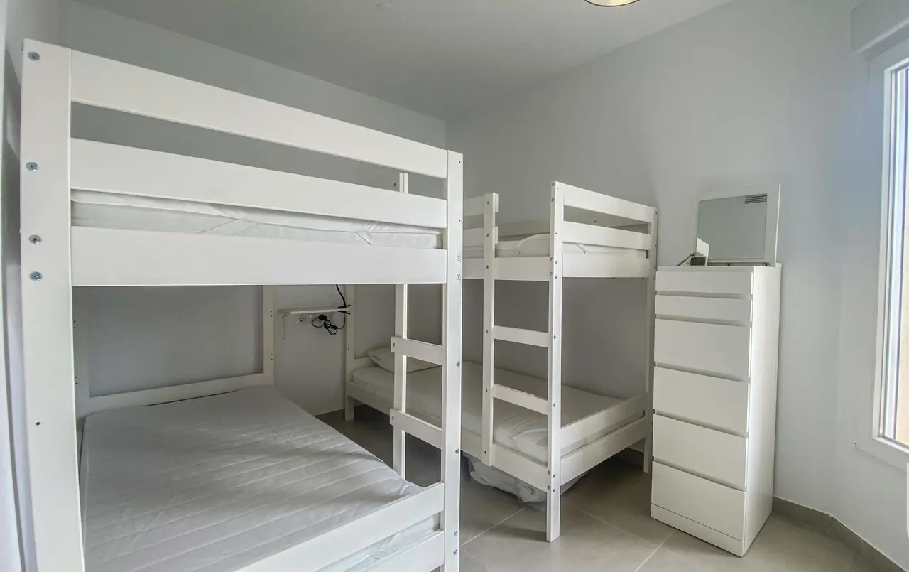 Dwie wygodne dwuosobowe sypialnie mają wbudowane szafy.