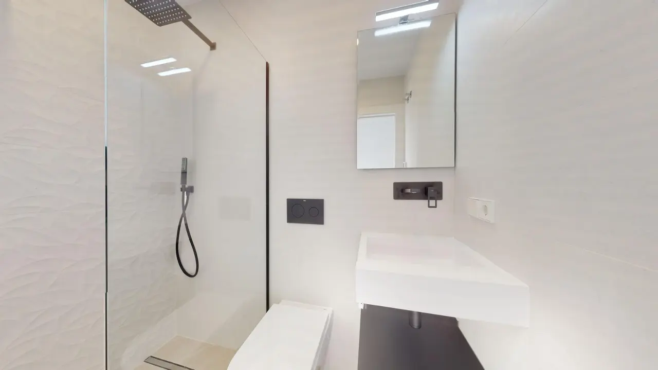 W pełni wyposażona kuchnia w białym połysku lub kolorze drewna. Kwarc technologiczny. Zlewozmywak ze stali nierdzewnej. Płyta indukcyjna ze zintegrowanym wentylatorem wyciągowym, piekarnik, kuchenka mikrofalowa, pralka, zintegrowana lodówka, zintegrowana zmywarka.
