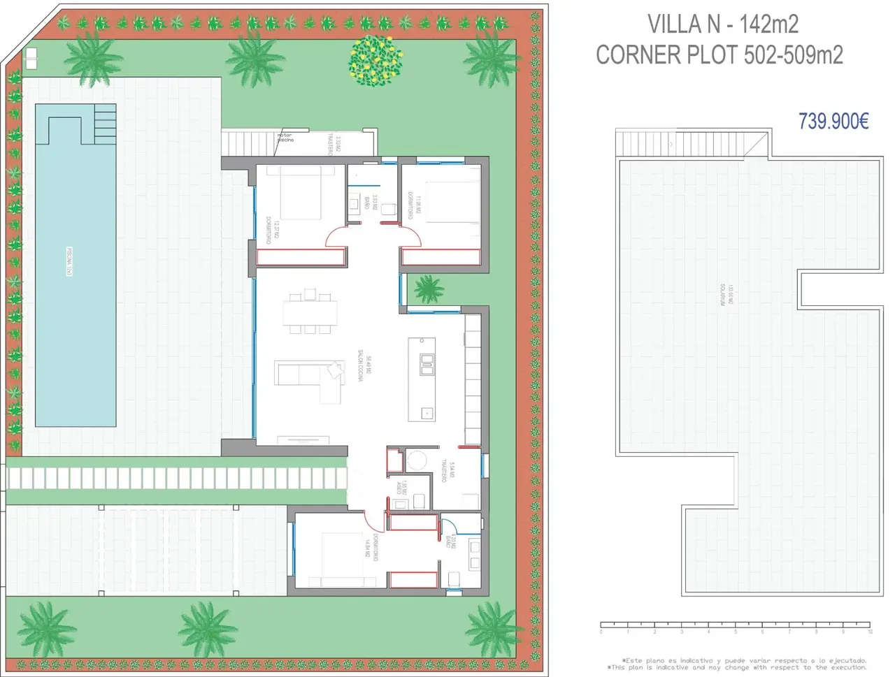 Nowoczesne wille z 3 sypialniami, 2 łazienkami i 1 toaletą, kuchnią na otwartym planie z salonem, tarasem, prywatnym ogrodem z basenem, parkingiem i solarium.