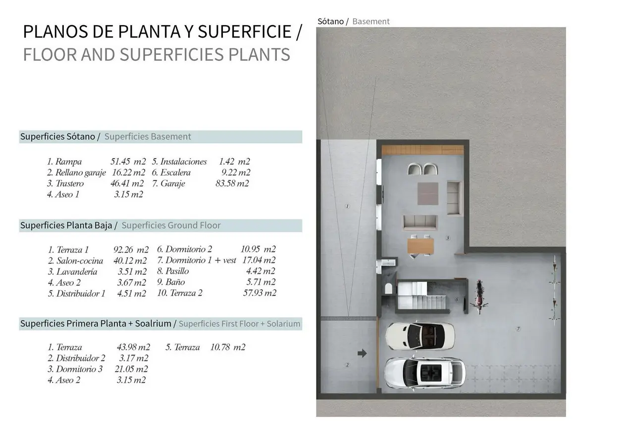 To Contemporary wysokiej jakości budować na trzech poziomach obejmujących; Parter 90m2, First Floor 28m2 + Solarium 55m2 i Basement 160m2 (możliwość stworzenia dodatkowej przestrzeni życiowej).