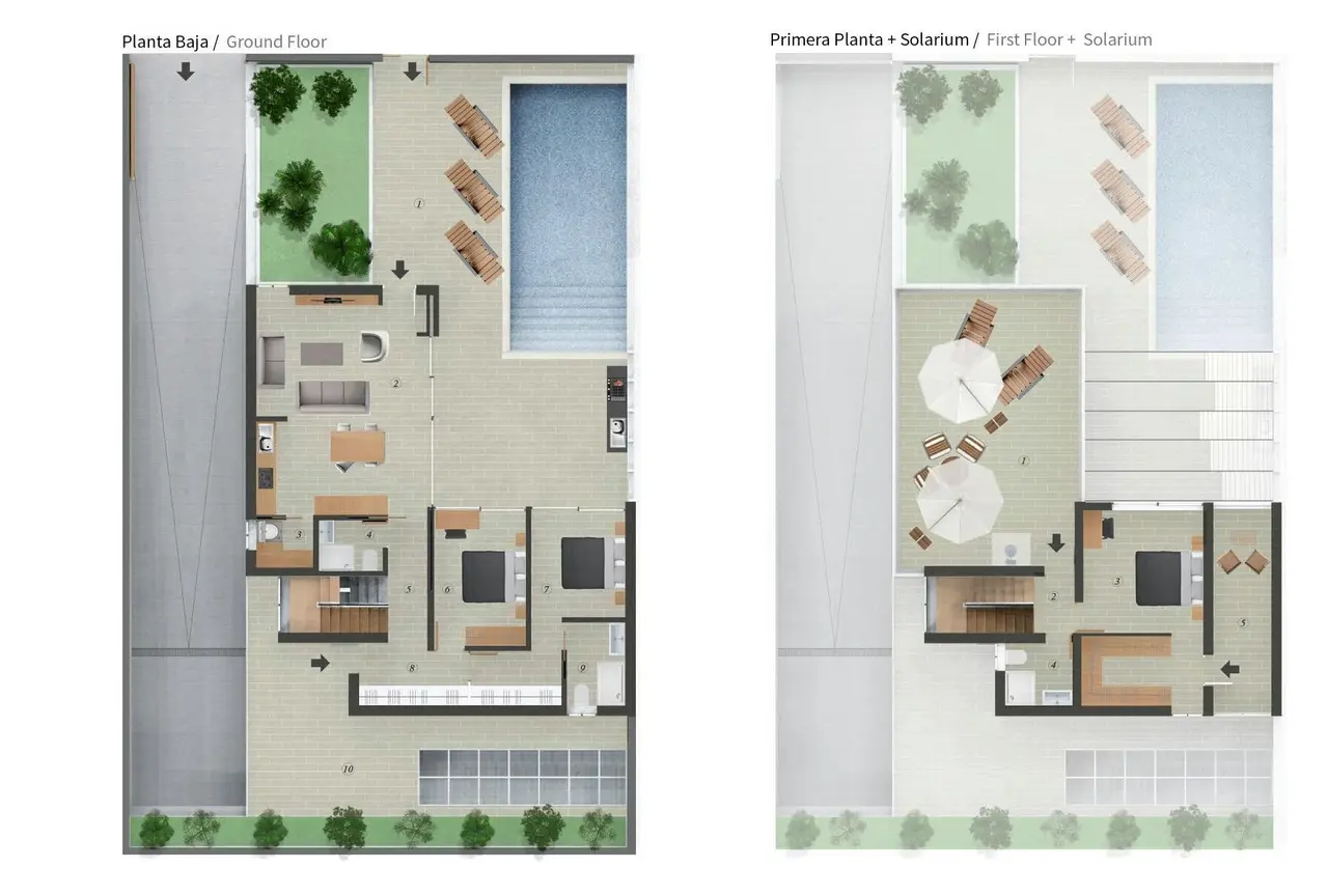 Willa posiada 3 podwójne sypialnie, 3 luksusowe łazienki, otwarta przestrzeń życiowa z nowoczesną wyposażoną kuchnią, bar śniadaniowy / wyspa. Duże ´schowaj i zsuń´ drzwi tarasowe otwierają się, aby odsłonić duży prywatny basen z dużą ilością otaczających tarasów. Airzone A-C jest wyposażony w ten klucz gotowy willi, które mogą być kontrolowane za pomocą aplikacji.