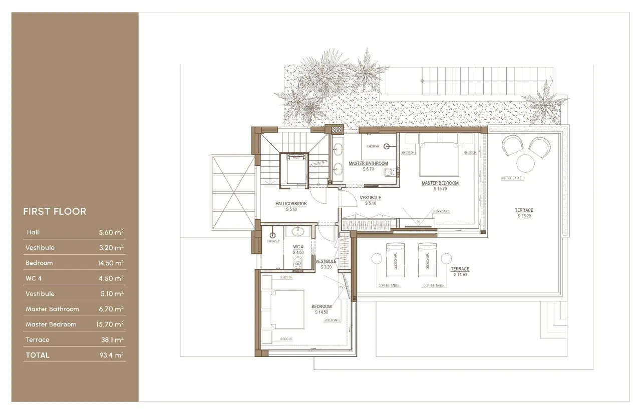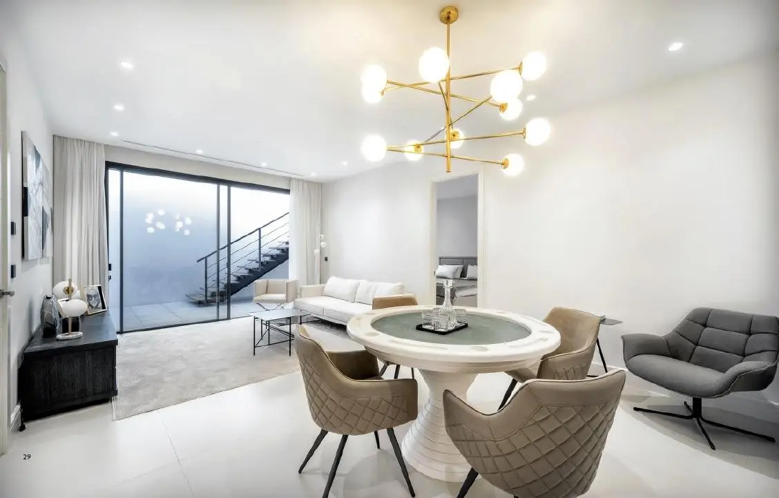 Ta nowoczesna willa szczyci się współczesną architekturą, najwyższej jakości wykończeniami i projektem, który maksymalizuje przestrzeń i naturalne światło. Z 4 sypialniami, 5 łazienkami i dużymi zadaszonymi i odkrytymi tarasami na każdym piętrze, dom oferuje wiele miejsc do rozrywki, opalania się lub cieszenia się rodzinnymi spotkaniami. Ponadto piwnica zapewnia możliwość przekształcenia dodatkowej przestrzeni w piątą sypialnię, oferując jeszcze większą elastyczność.
