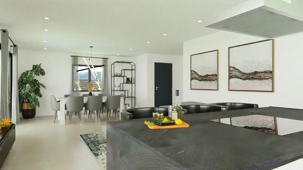 Odkryj elegancję i komfort tej pięknej niezależnej willi o powierzchni 108 m2 lub 128 m2 (możliwość dwóch rozmiarów domu), zaprojektowanej tak, aby oferować wyjątkowy styl życia na parterze.