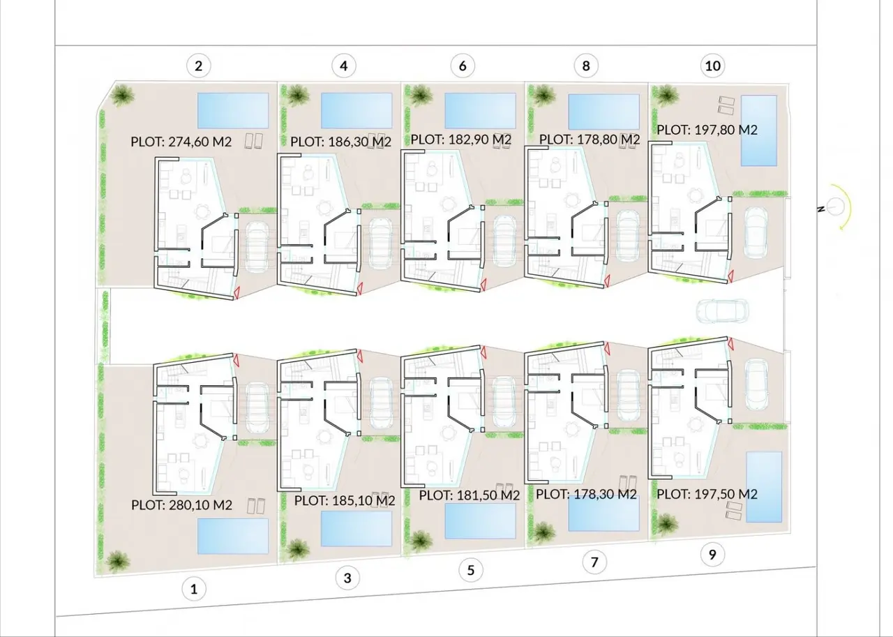 Ten luksusowy kompleks mieszkaniowy składa się z 10 bliźniaczych willi.