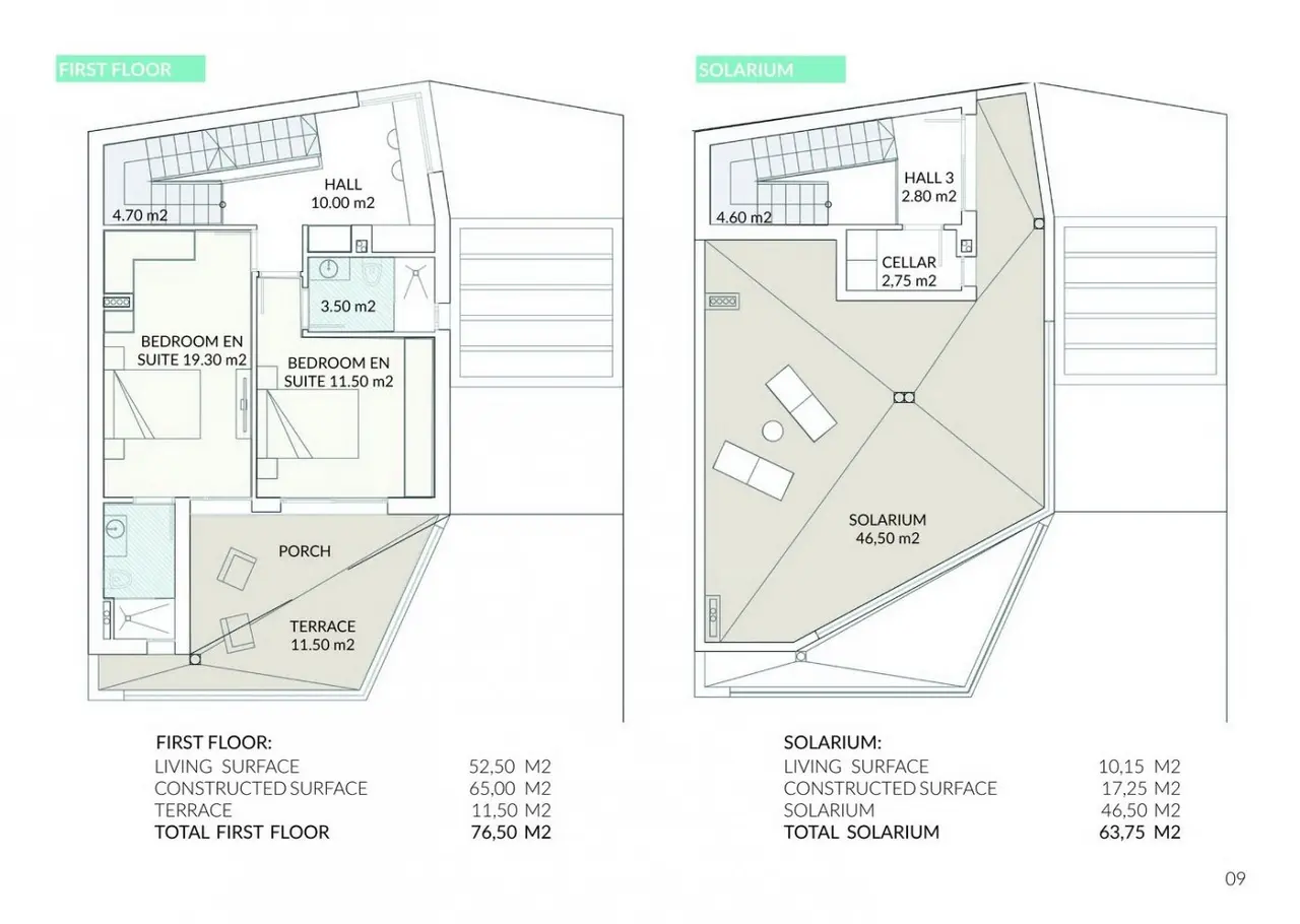 Każda nieruchomość jest zbudowana na jednym piętrze i posiada solarium.