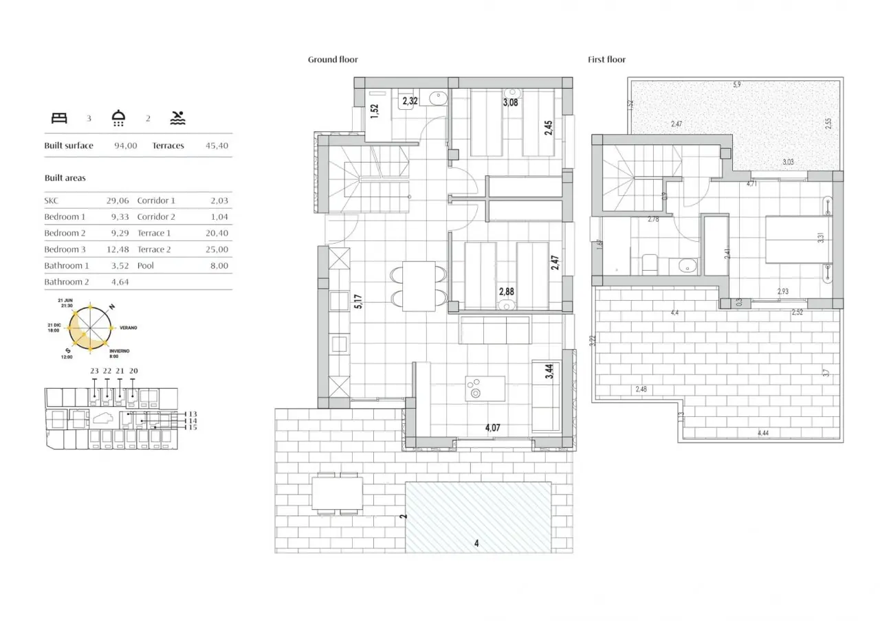 Mieszkaniowy składający się z 25 willi na dwóch poziomach z różnymi niezależnymi lub bliźniaczymi modelami z 3 sypialniami i 2 łazienkami, a także prywatnymi ogrodami i dużym obszarem wspólnym z basenem.