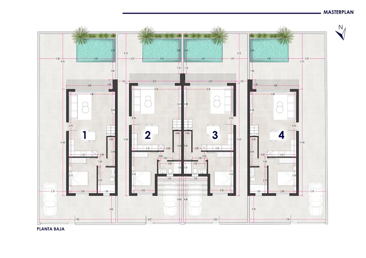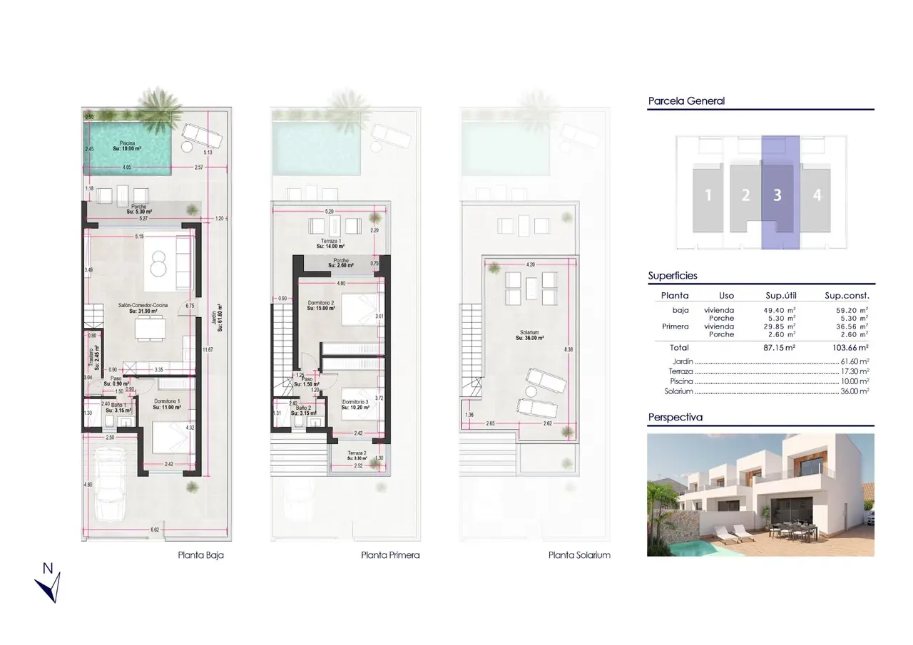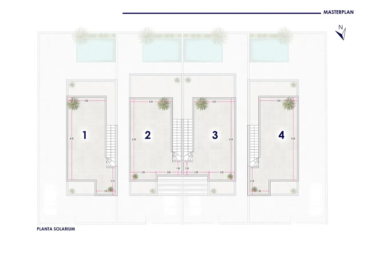Nowoczesne wille mają 3 sypialnie, 2 łazienki, kuchnię na otwartym planie z częścią wypoczynkową, wbudowane szafy, prywatne solarium, prywatny ogród z basenem i miejsce parkingowe przy drodze.