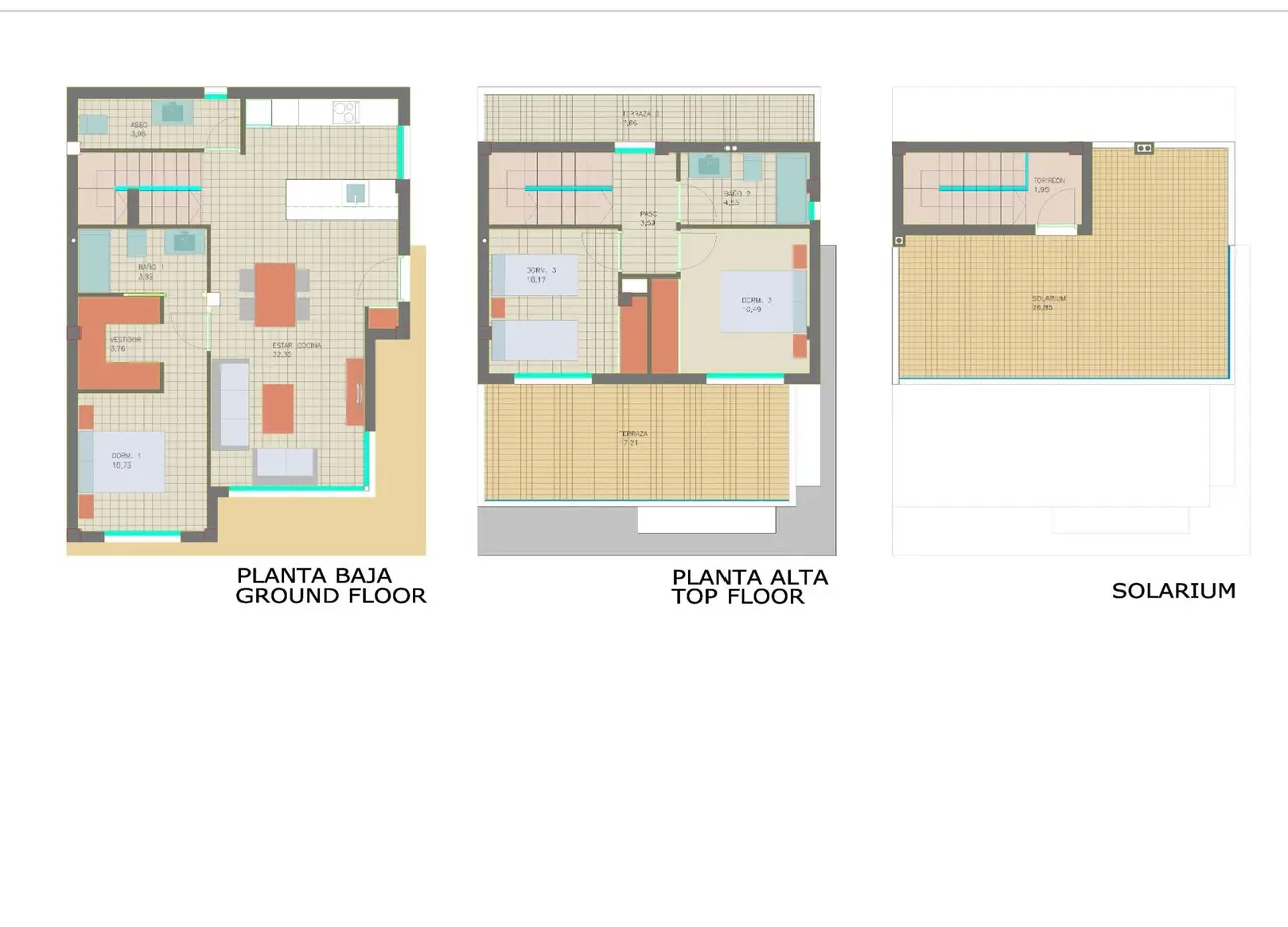 Wille zbudowane na 2 piętrach mają 3 sypialnie, 2 łazienki, toaletę dla gości, kuchnię na otwartym planie z salonem, piwnicę, taras i solarium, ogród z prywatnym basenem.
