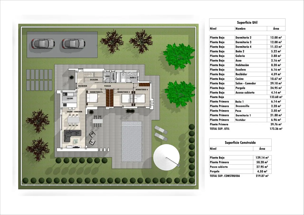 Wille zostaną zbudowane na rustykalnych działkach o powierzchni 10.959 m2, z których około 2.000 m2 zostanie ogrodzonych, z wszystkimi dostawami wody, energii elektrycznej, instalacją zestawu paneli fotowoltaicznych do samodzielnego zużycia energii elektrycznej i systemu oczyszczania ścieków za pomocą biologicznej oczyszczalni utleniającej.