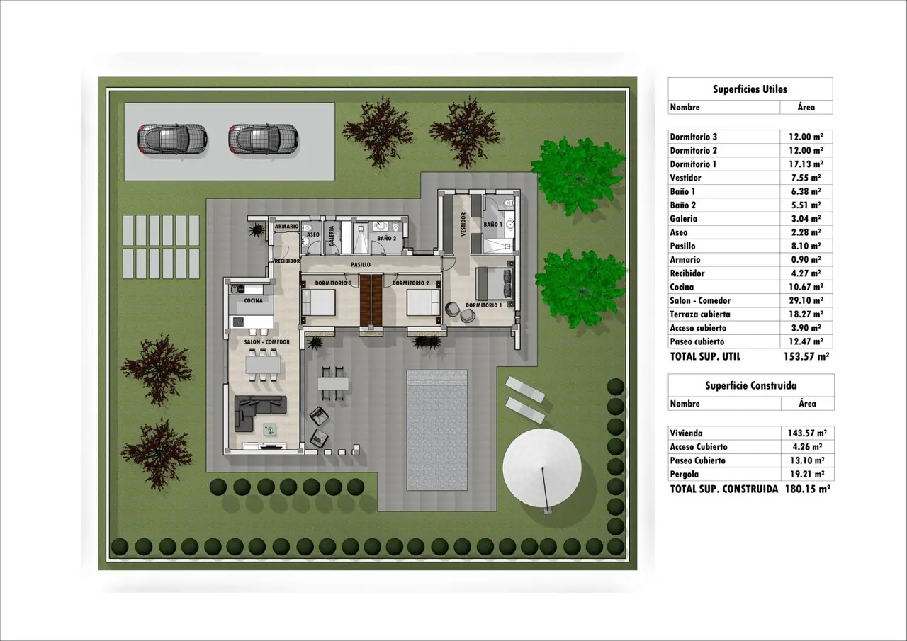 Wille zostaną zbudowane na rustykalnych działkach o powierzchni 10.959 m2, z których około 2.000 m2 zostanie ogrodzonych, z wszystkimi dostawami wody, energii elektrycznej, instalacją zestawu paneli fotowoltaicznych do samodzielnego zużycia energii elektrycznej i systemu oczyszczania ścieków za pomocą biologicznej oczyszczalni utleniającej.