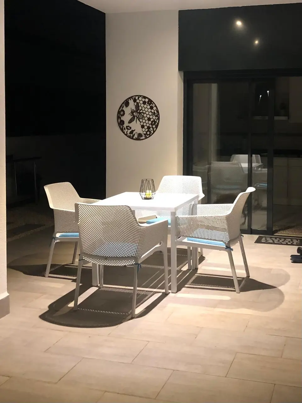 Dom posiada prywatny basen i fotowoltaiczne panele słoneczne do zasilania w energię elektryczną.