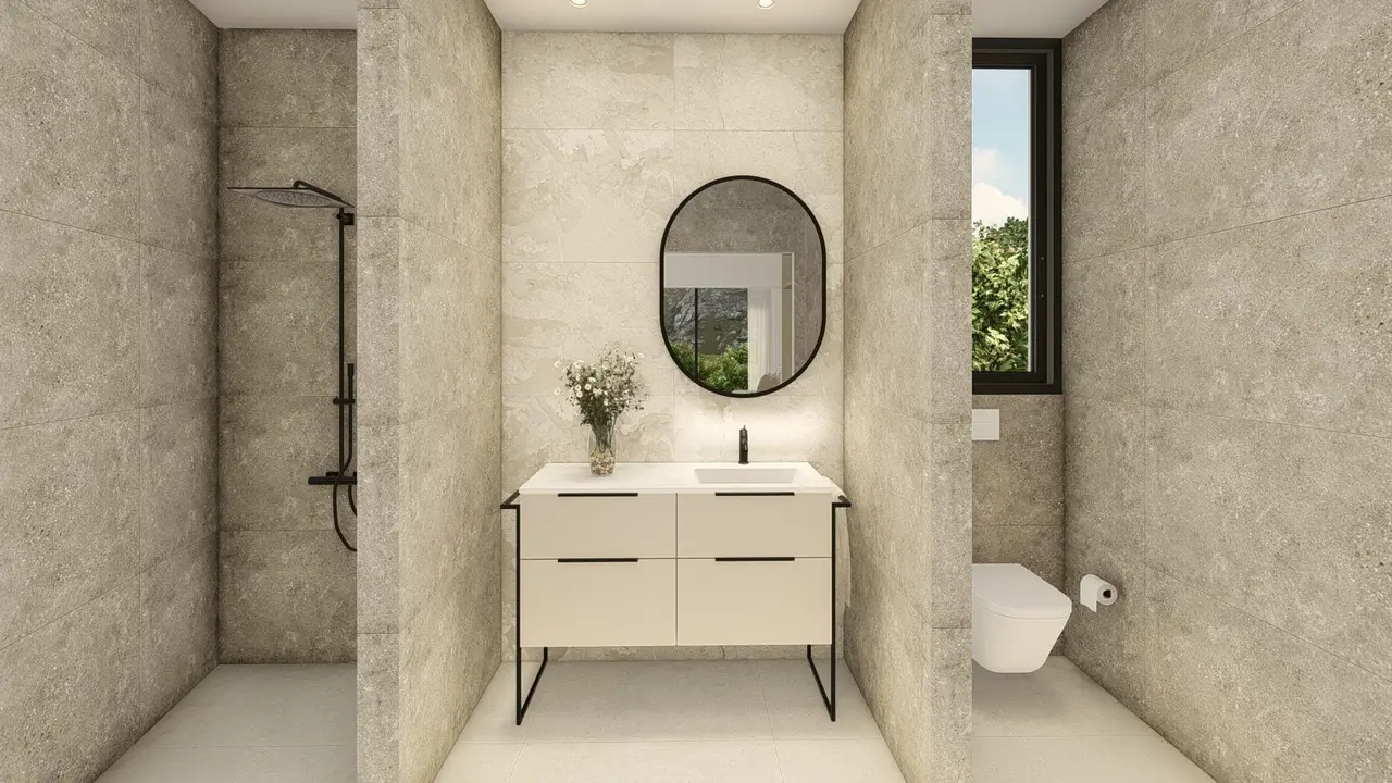 Nowoczesne wille zbudowane na 3 piętrach, mają 3 sypialnie, 3 łazienki, toaletę dla gości, nowoczesną kuchnię na otwartym planie z dużym salonem / jadalnią z bezpośrednim dostępem do tarasu z basenem, wbudowane szafy, piwnicę z garażem i magazynem, klimatyzację, sprzęt AGD.