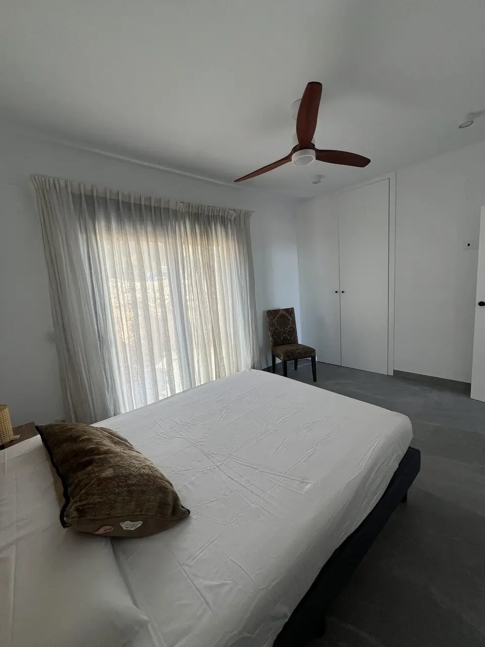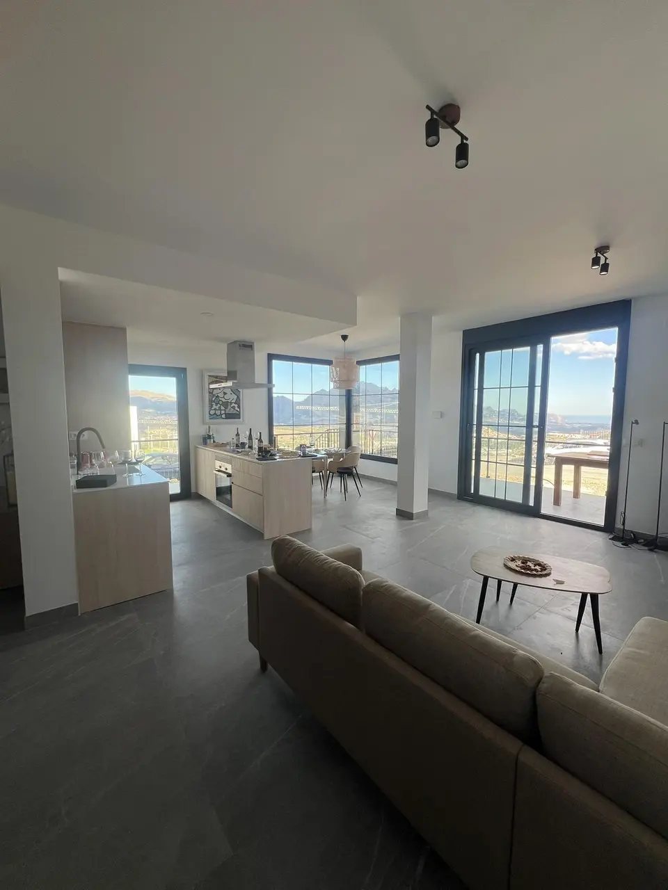 Kuchnia wyposażona w szafki dolne i blaty ze silestone, z płytą ceramiczną, piekarnikiem, okapem, lodówką, pralką, zmywarką i grzejnikiem aerotermalnym.
