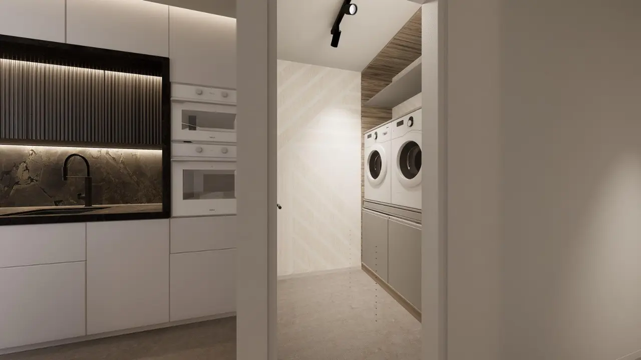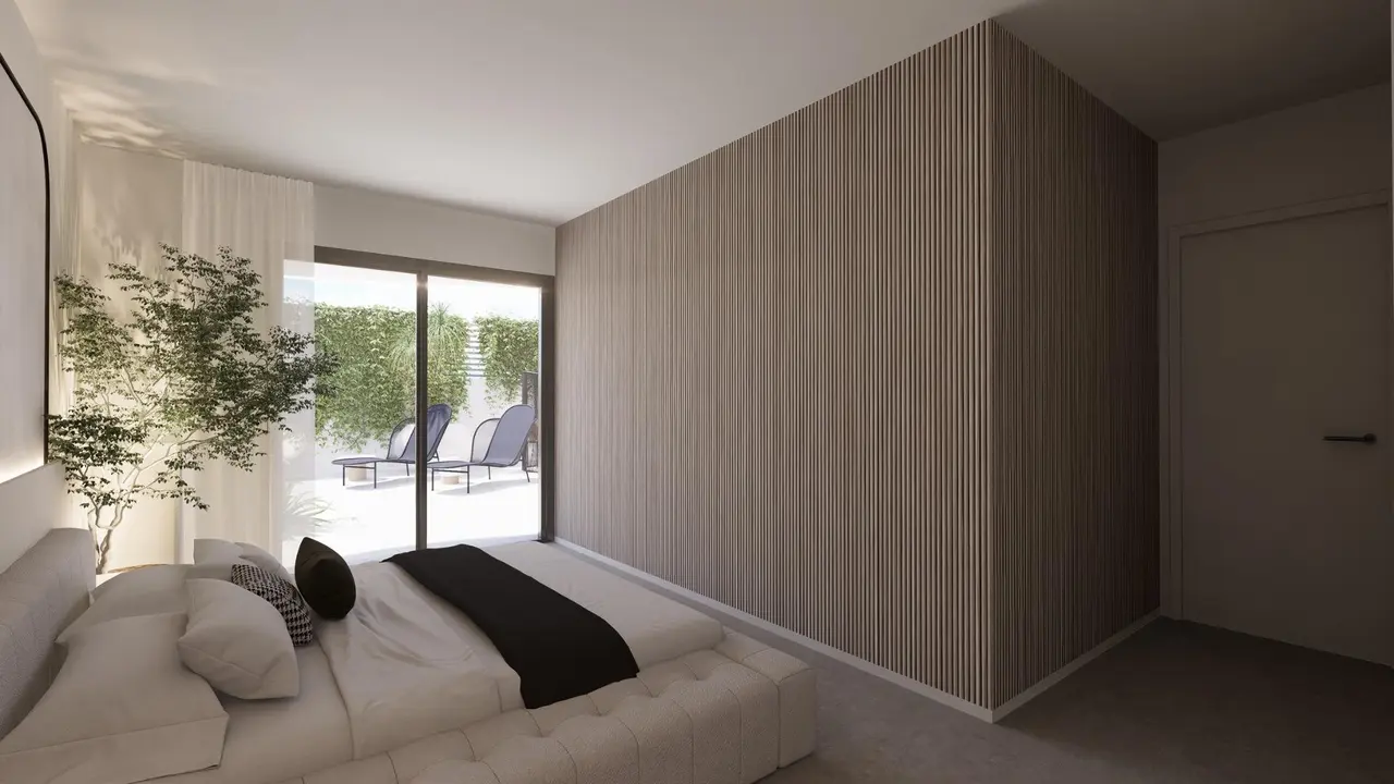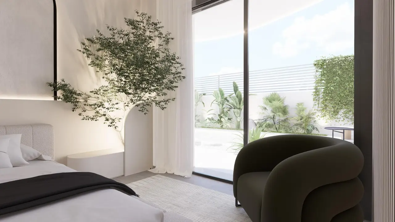 Projekt willi jest optymalnie zorientowany, aby cieszyć się przyjemną temperaturą przez cały rok, z kształtem litery L, który pozwala praktycznie całemu domowi mieć widok i dostęp do przestronnego i luksusowego ogrodu.